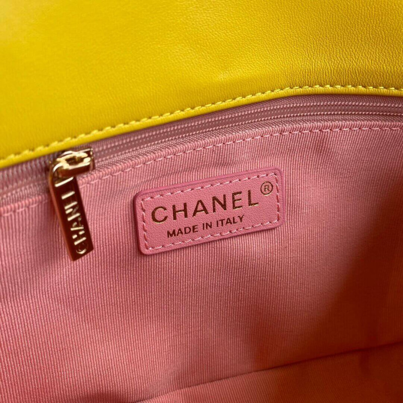 The woven chain link has been reinvented. Chanel made them smaller and cover them all over the body of the bag to create the iconic diamond pattern. They mix the chains with different colors like purple, pink, yellow and baby blue to make them eye-catching.