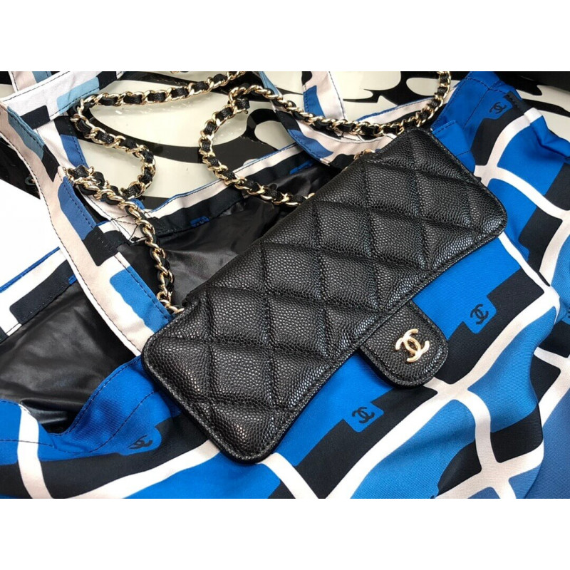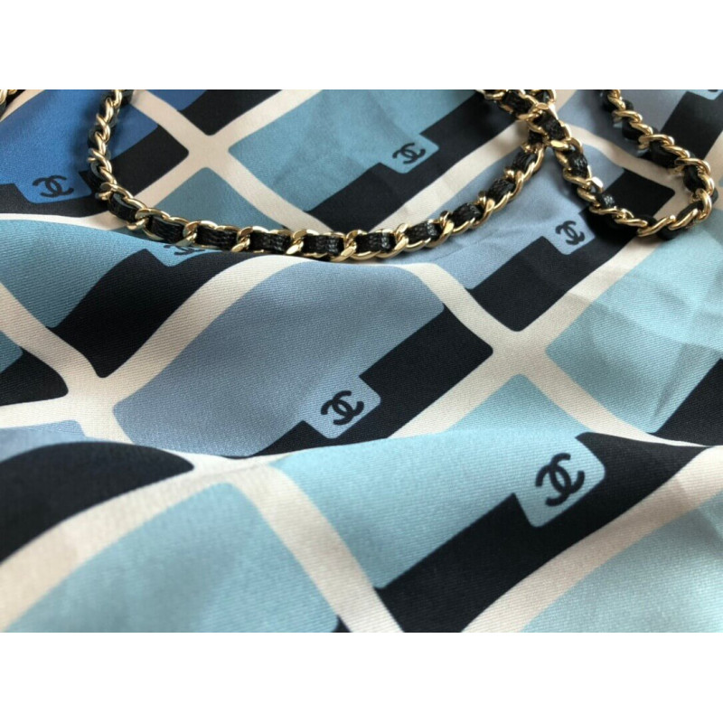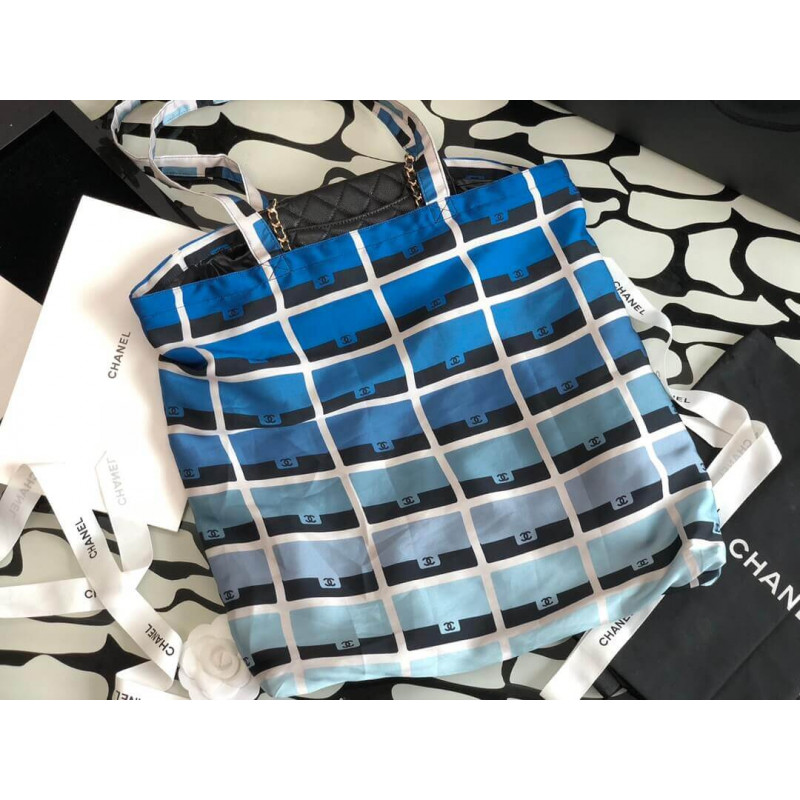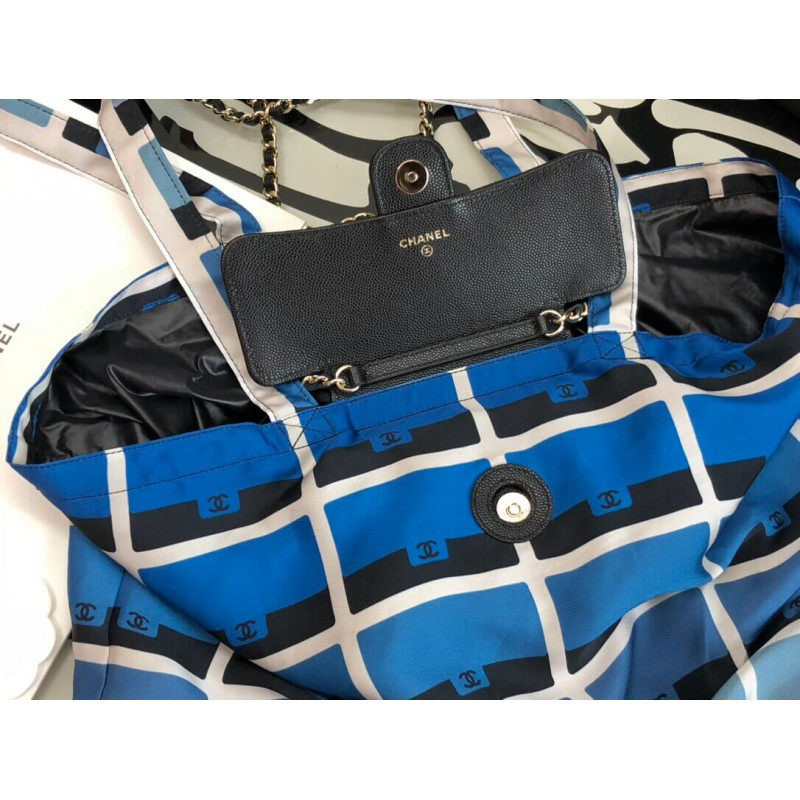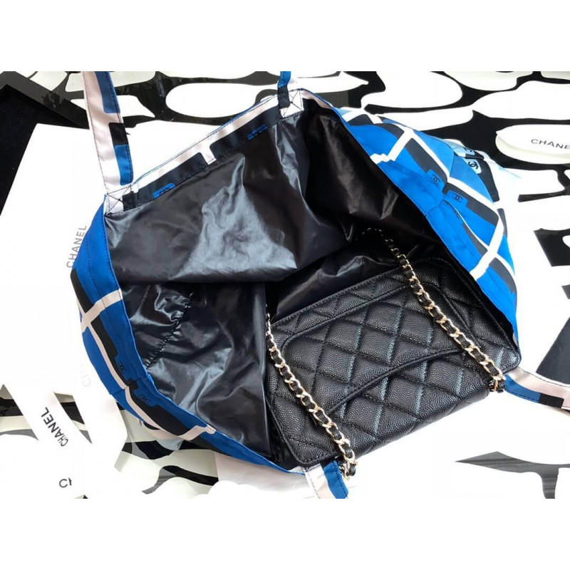 Chanel Printed Fabric Foldable Tote Bag With Chain AP2095 Blue