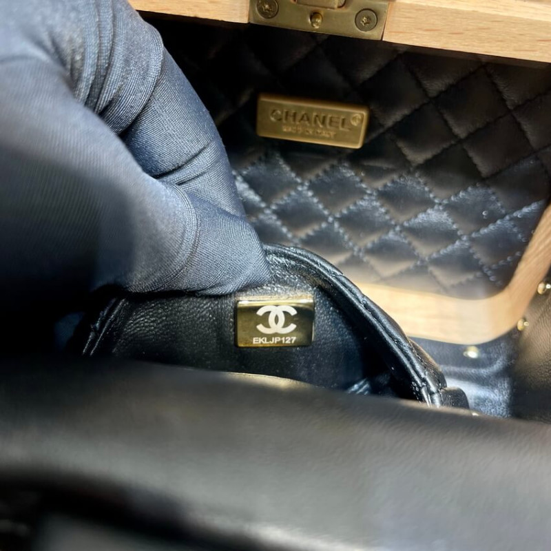 Meet this Chanel Beech Wood Vanity Case from the Cruise 2022 Collection. This new design is made from Beech Wood and is full of secrets. The front is crafted with a large CC logo and printed with wooden graphic – horizontal lines. The edges are refined with calfskin leather and the top comes with a solid and stiff handle. This bag can be carried cross body thanks to the woven chain leather strap. But there is more. Opens the bag for more surprises: Inside you can find some spacious interior to store daily essentials. But there is also an extra pocket inside in the form of a Classic Wallet. Isn’t that beautiful?