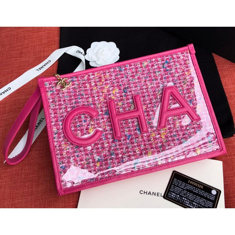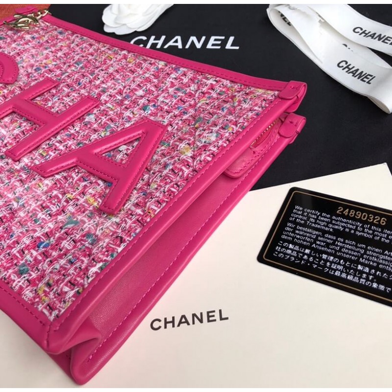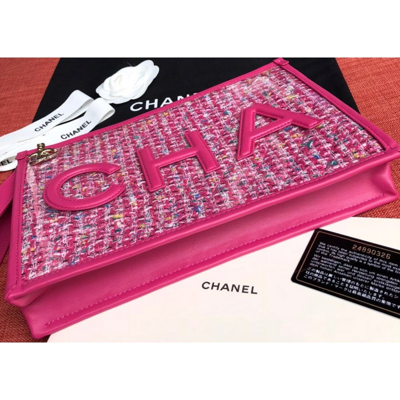 This pouch is fancy, colorful and stunning to wear for the upcoming summer. And best of all, it’s made from Tweed but protected by the PVC cover. And because of this, this little glamorous pouch can withstand scratches and rain. As that is not fashion enough, the front and back are stitched with the CHANEL logo. The CHA on the front and NEL on the back. The pouch can be opened with a zip, which is attached to a wrist strap for carrying comfort. This zip is also attached to a CC Charm.