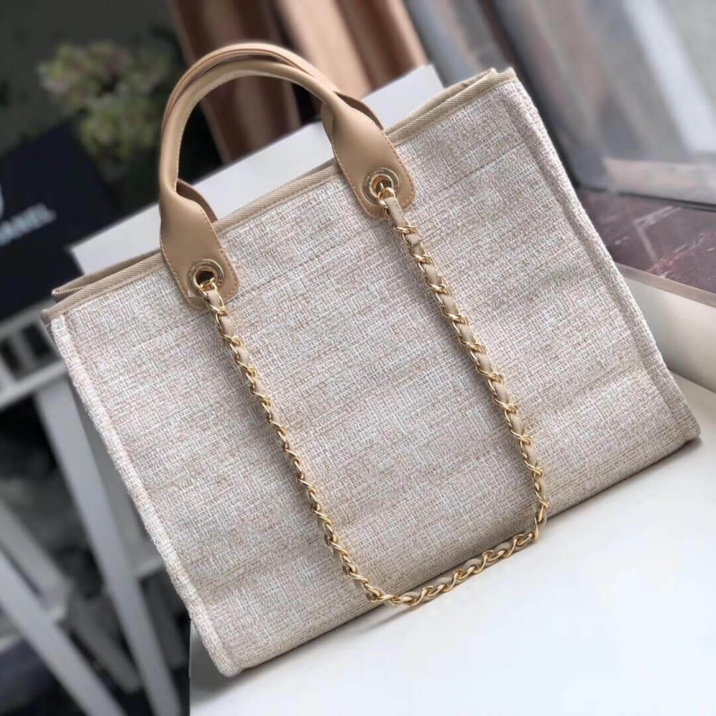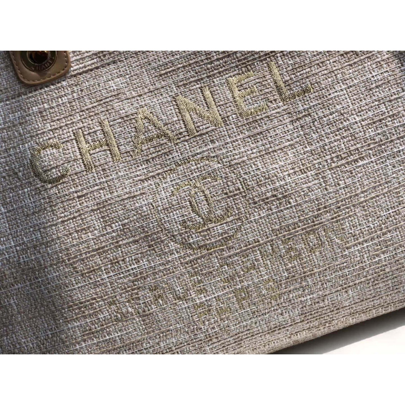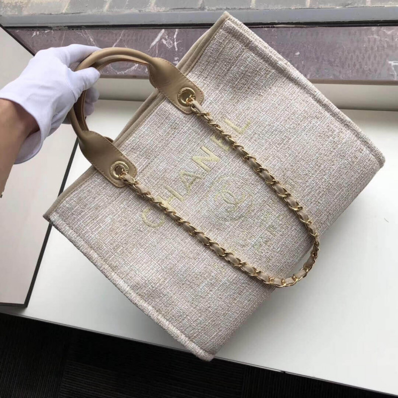 Chanel Deauville Tote 38cm Canvas Bag A66941 Cream / Beige