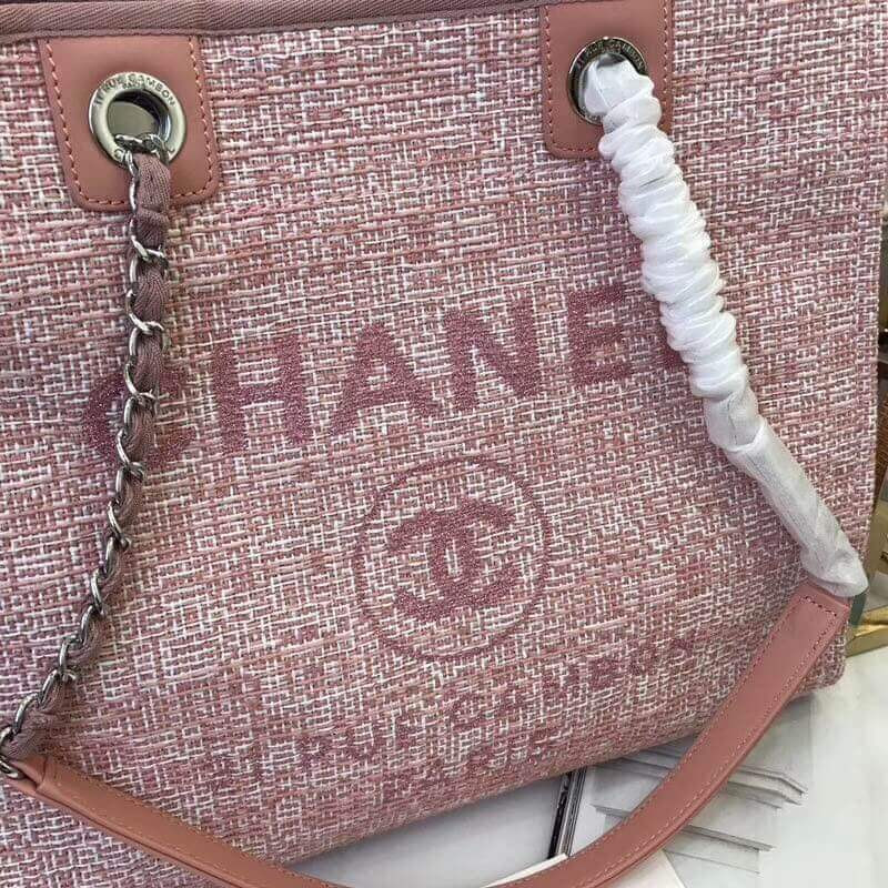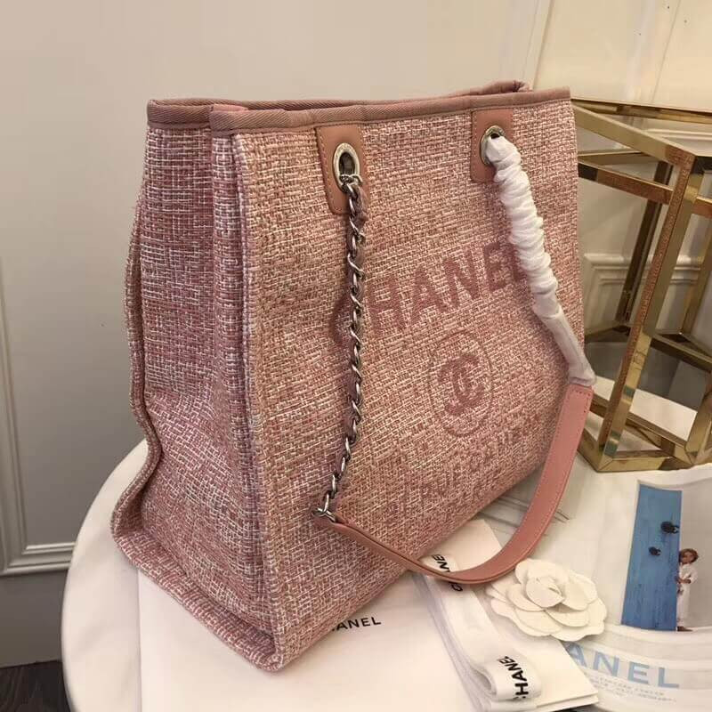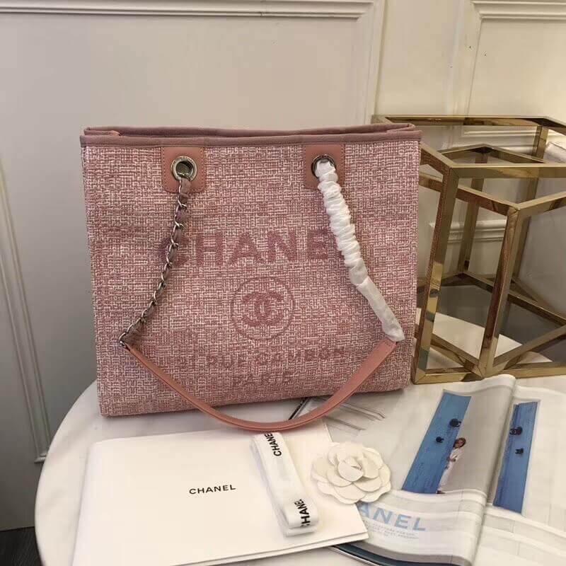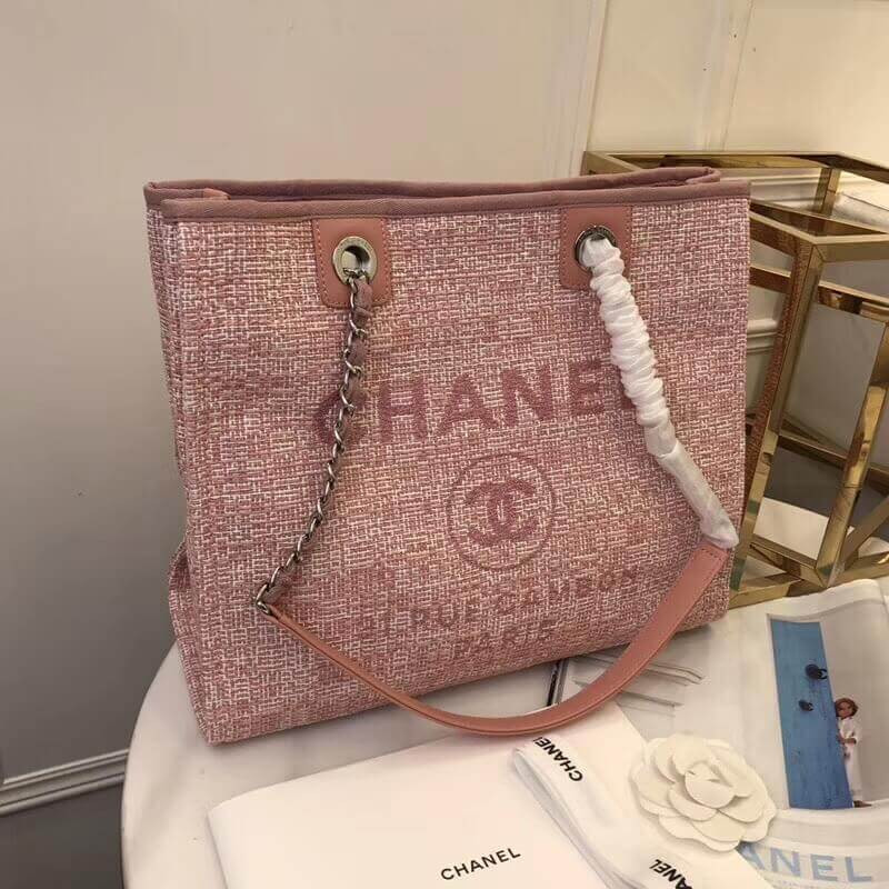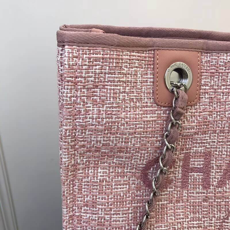 Chanel Deauville Chain Shoulder Tote 33cm Canvas Bag A66939