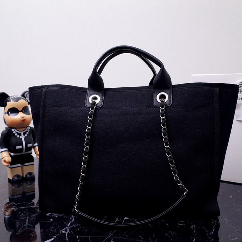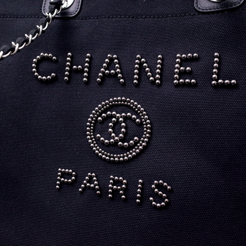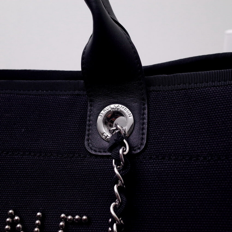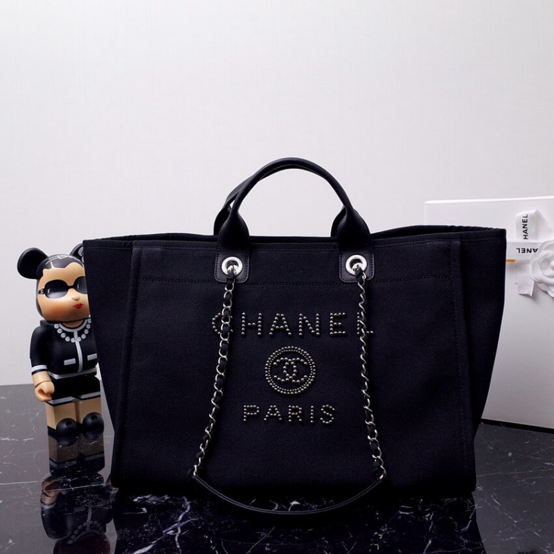 In 2020 Chanel released a limited edition version of the Deauville tote bag which features the logo in imitation pearls on the front. The pearl logo version of the bag is available in two colors, black, and Ecru beige and has since become an influencer must-have.