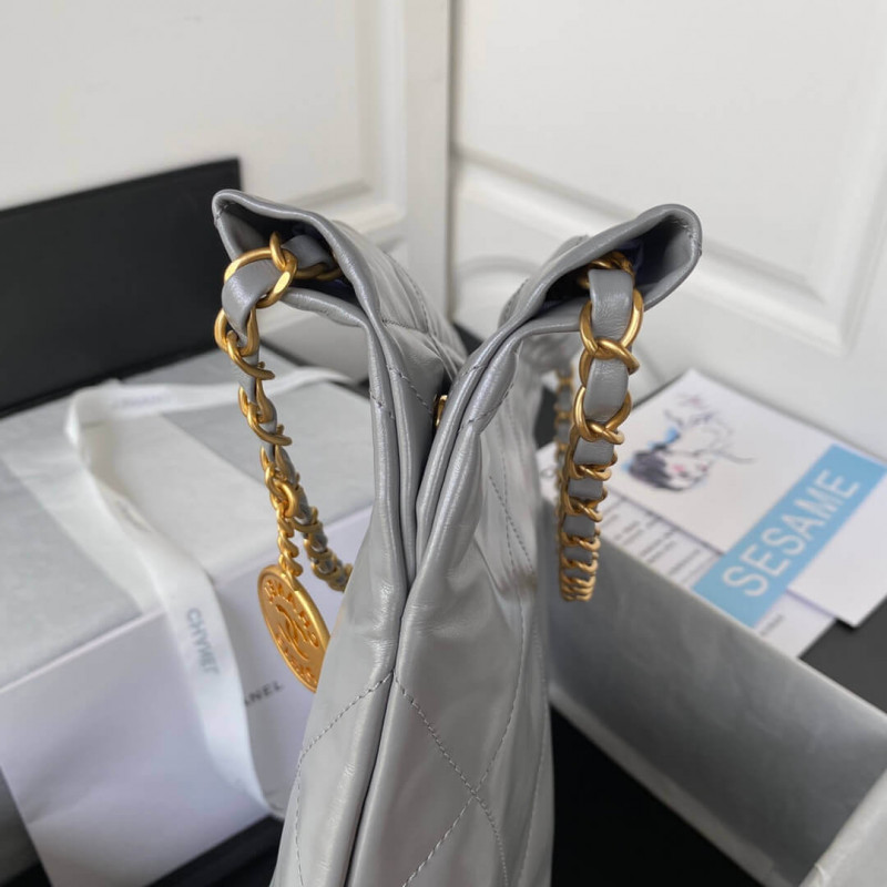 - Gray Metallic Calfskin leather strap with interwoven chain detail