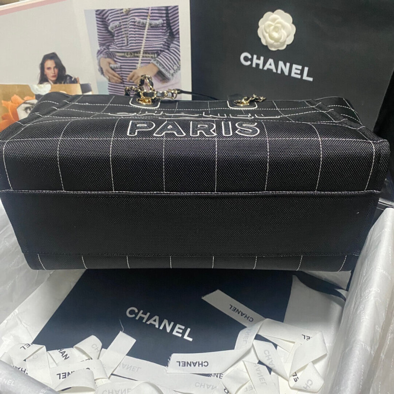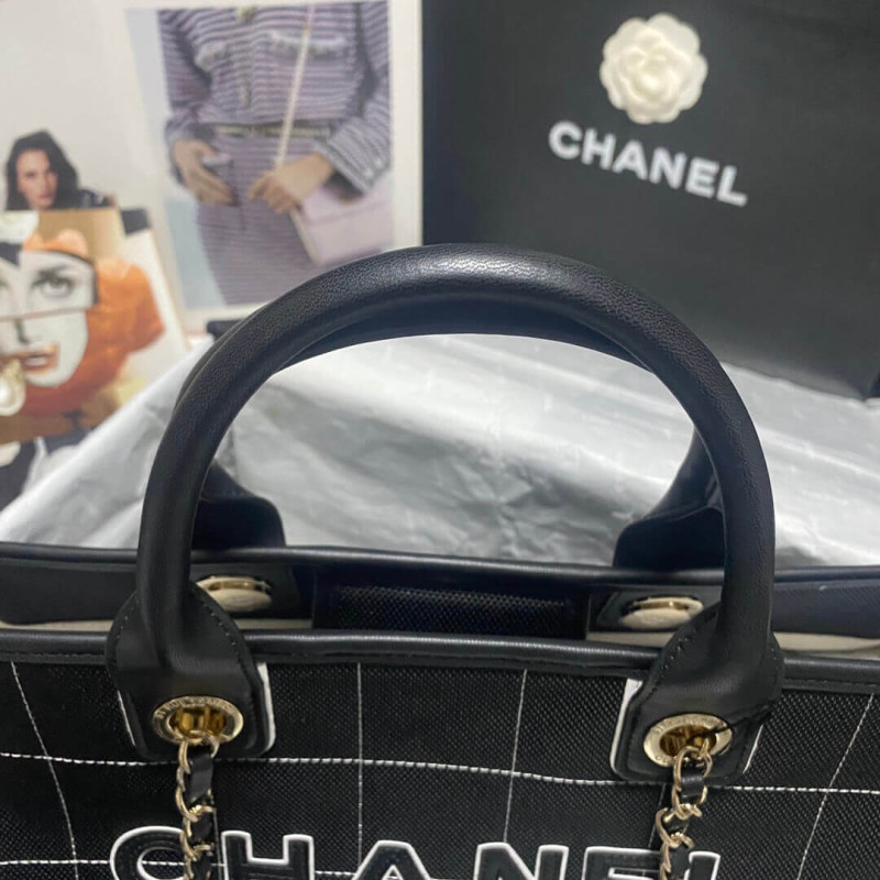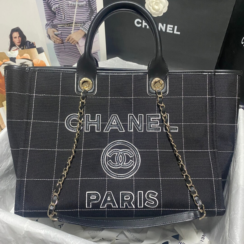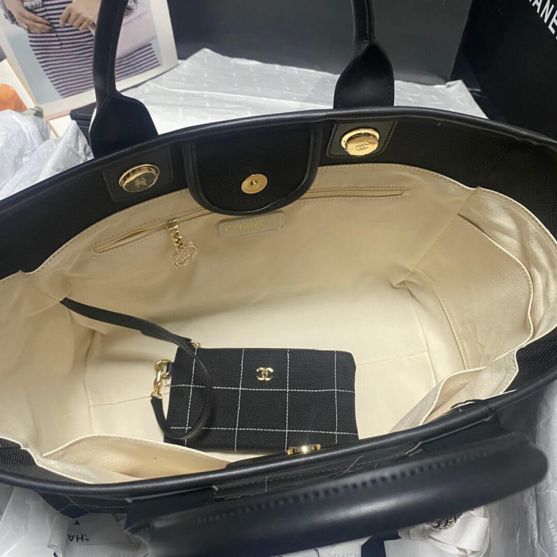 Chanel Deauville Cotton & Calfskin Large Shopping Bag AS93786