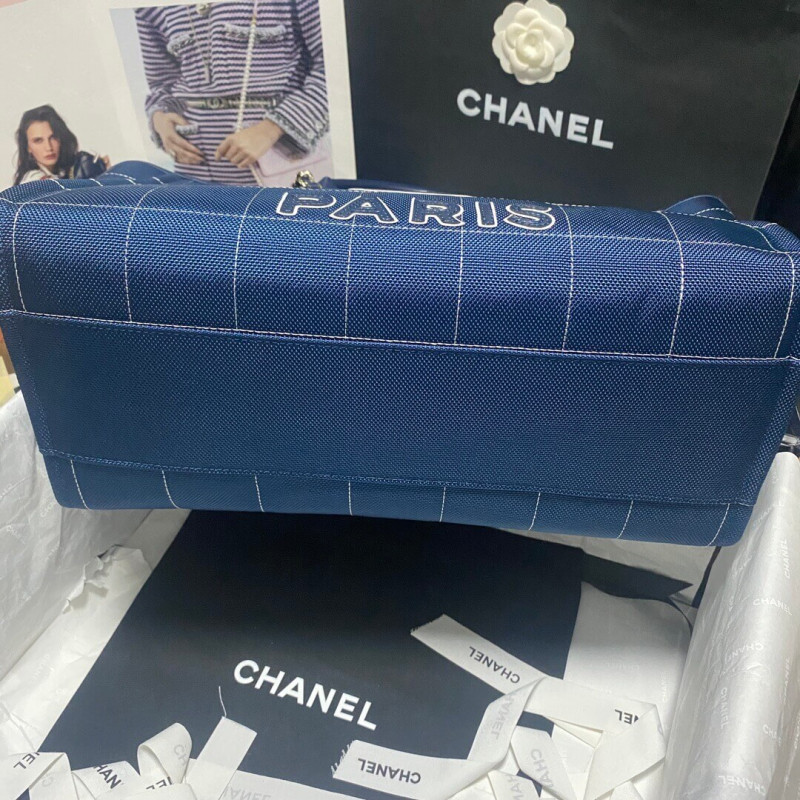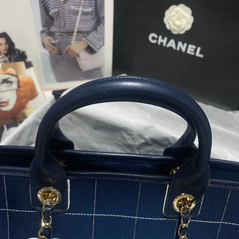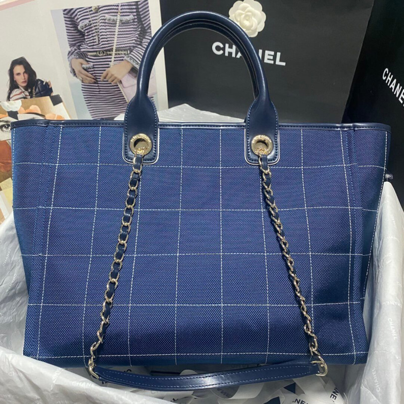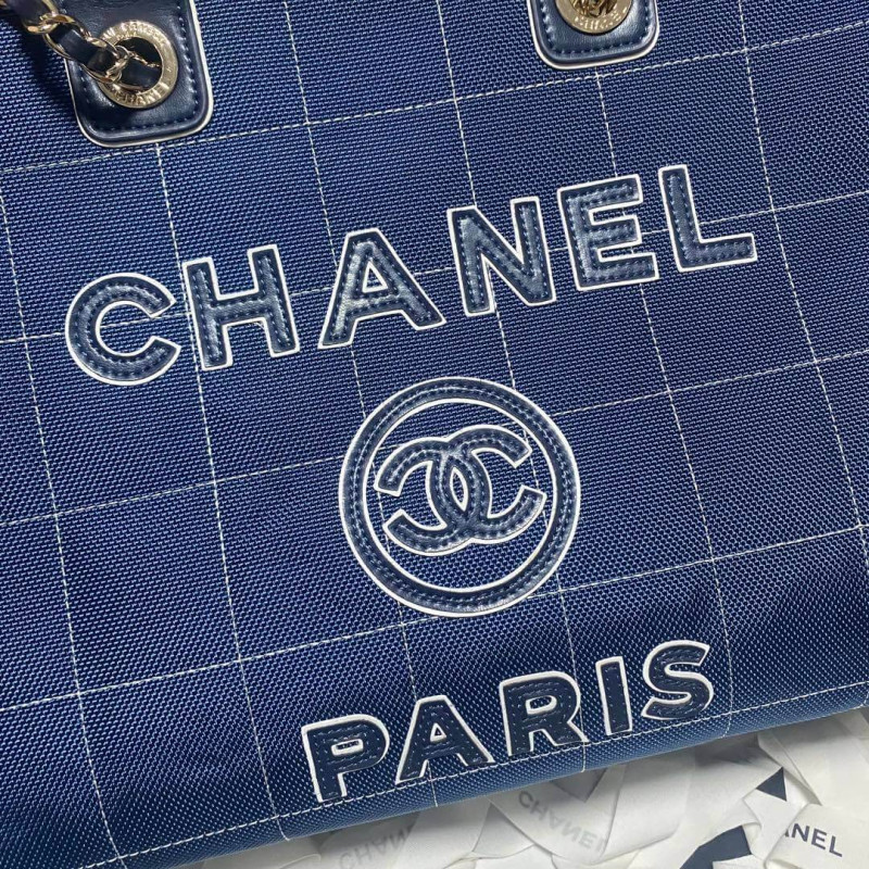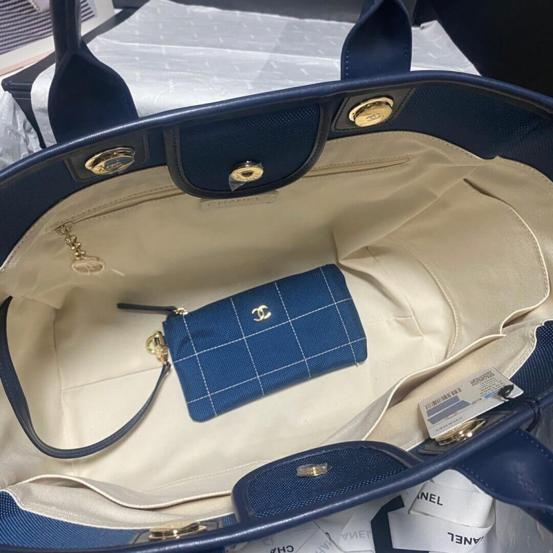 Chanel Deauville Cotton & Calfskin Large Shopping Bag AS93786