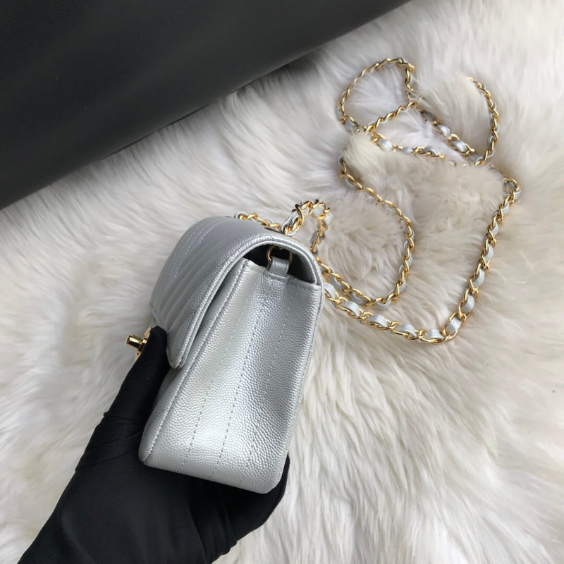 Chanel classic bags are made up of its quilted material but for this particular Mini Chevron Classic Flap Bag, it is a queen bag on its own with its Chevron quilted material, which by the way is a modern print on Chanel’s classic bag. The Mini Chevron classic flap bag version is ideal for women who doesn’t like to carry too much stuff with them so a small mini bag is their best bet.