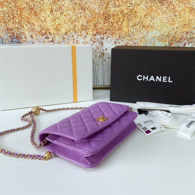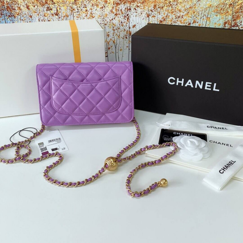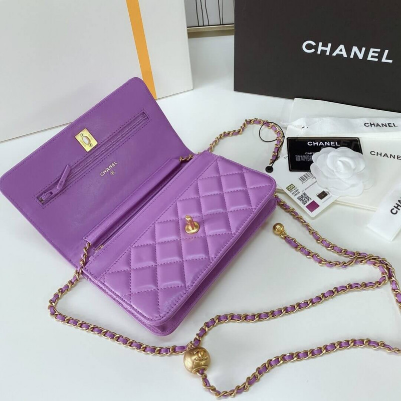 Chanel Caviar Calfskin Pearl Crush Gold Ball Phone Clutch With Chain 99098