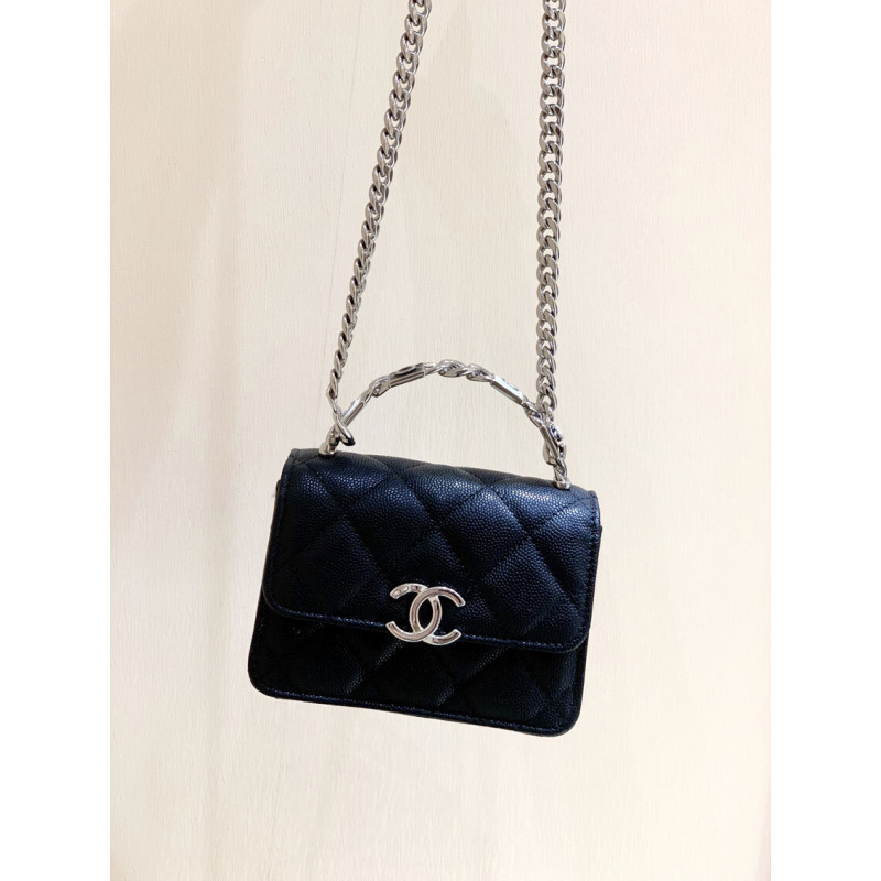 Chanel Enamel Handle Clutch with Chain in Grained Calfskin AP2758