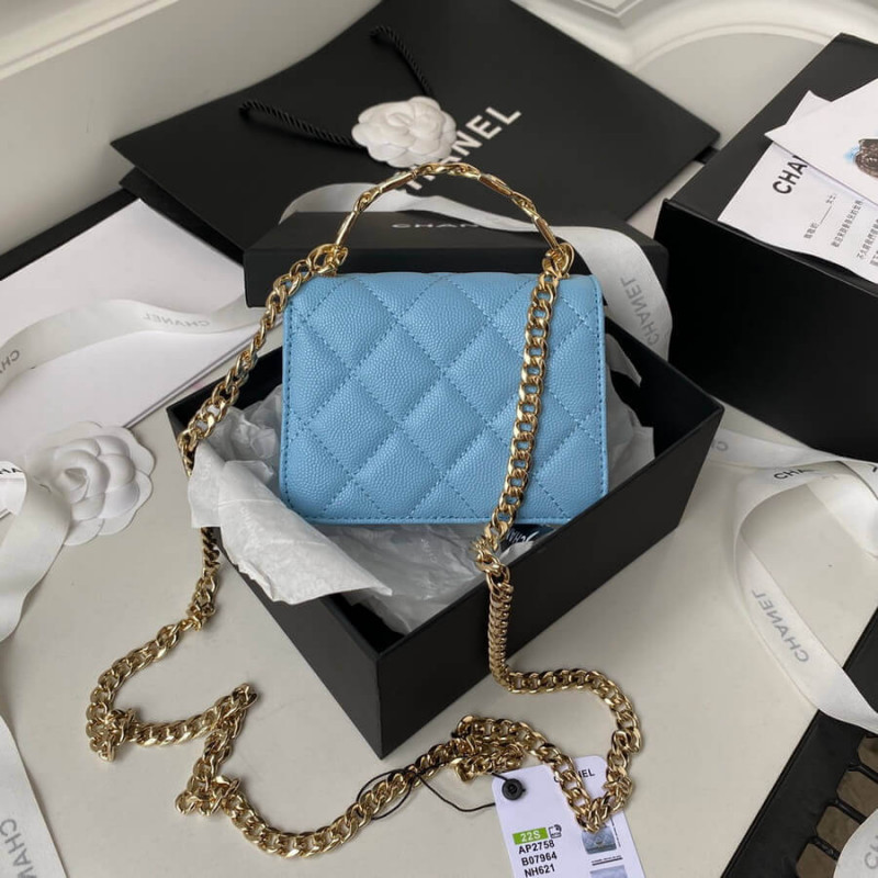 Chanel Enamel Handle Clutch with Chain in Grained Calfskin AP2758