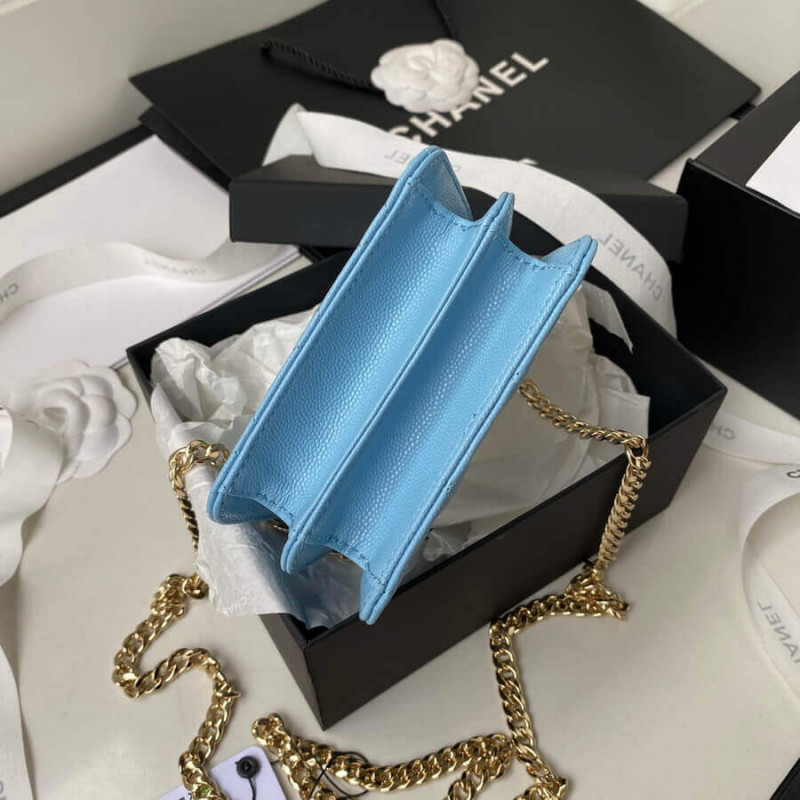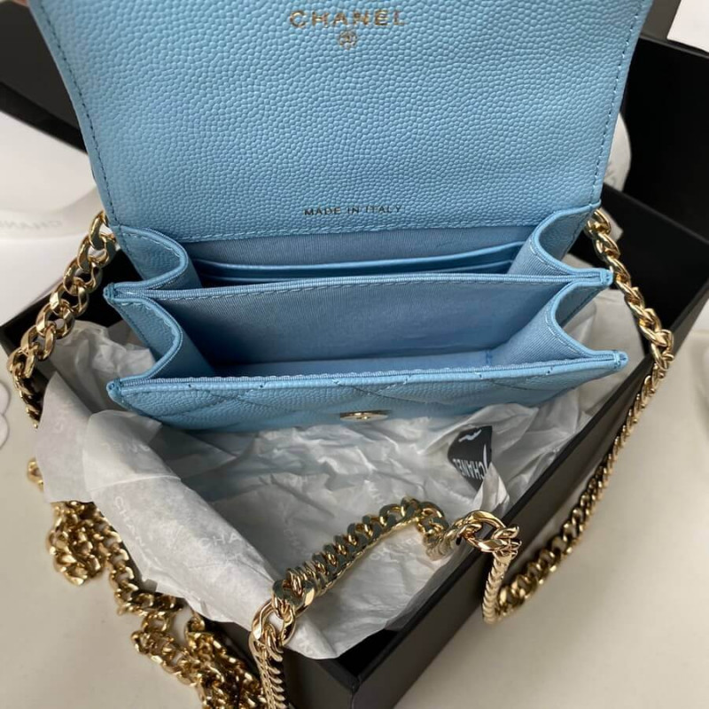 Chanel Caviar Calfskin Pearl Crush Gold Ball Phone Clutch With Chain 99098