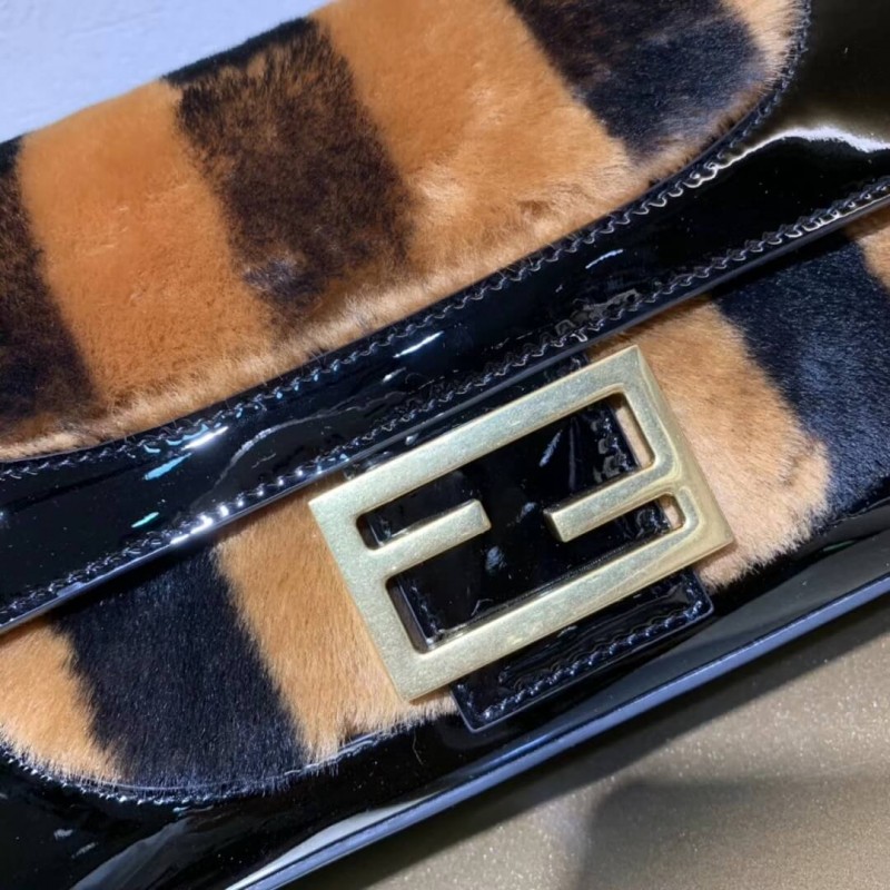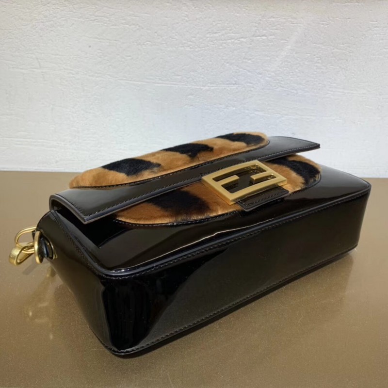 Fendi Patent Leather And Sheepskin Baguette Bag 8BR600