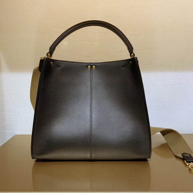 Medium handbag with internal pocket and iconic twist lock. Single handle and detachable shoulder strap. Made of khaki calfskin. The inside pocket is finished in glazed fabric with a jacquard FF motif. Canvas shoulder strap. Gold-finish metalware.