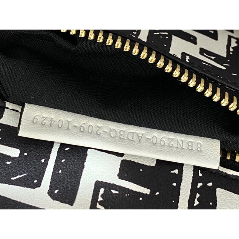 Equipped with lining decorated by a black graphic outline to create the FF motif, details in black leather, two inner compartments divided by a stiff partition, an inner pocket with zip and gold-finish metalware.