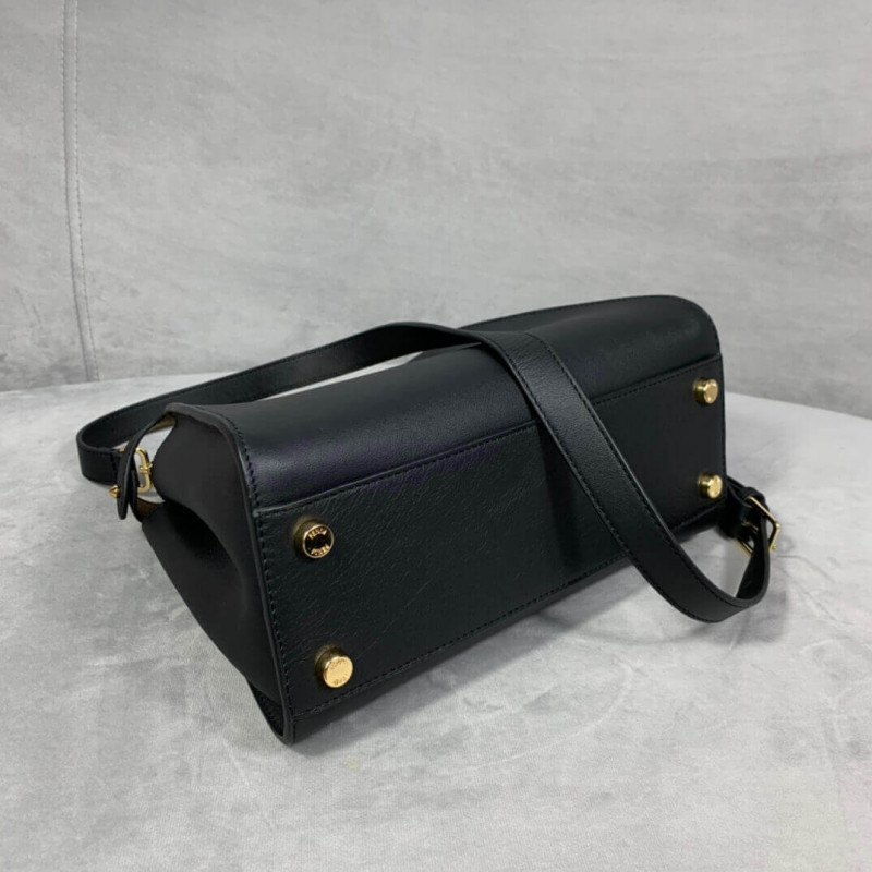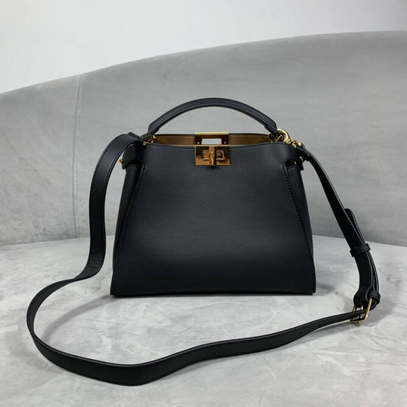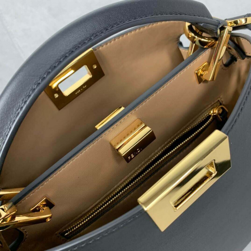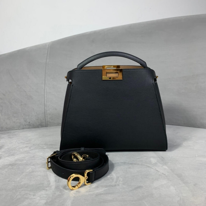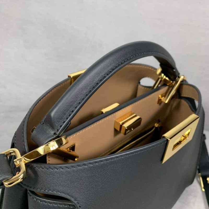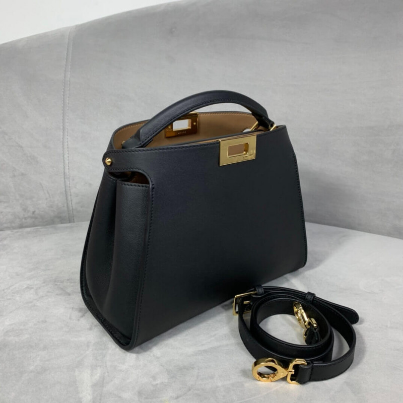 Iconic Peekaboo Essentially bag made of brown leather and embellished with the classic twist lock on both sides.
