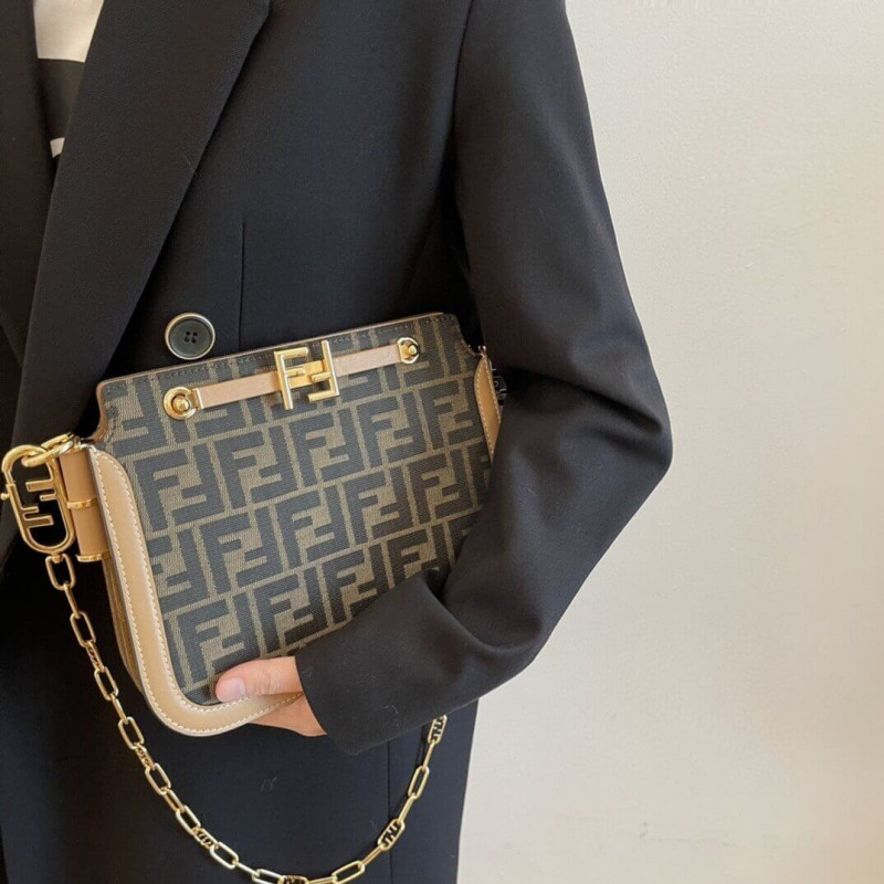 Fendi Pomodorino Brown FF Fabric Mini Bag 8BS059