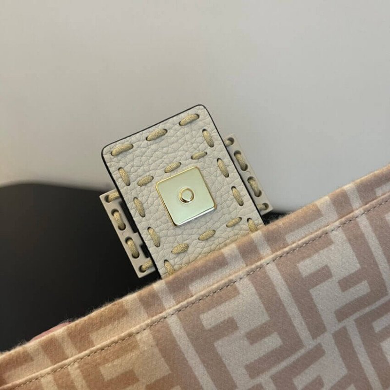 Medium Baguette 1997 bag made of wool with beige FF motif, embellished with an FF clasp.