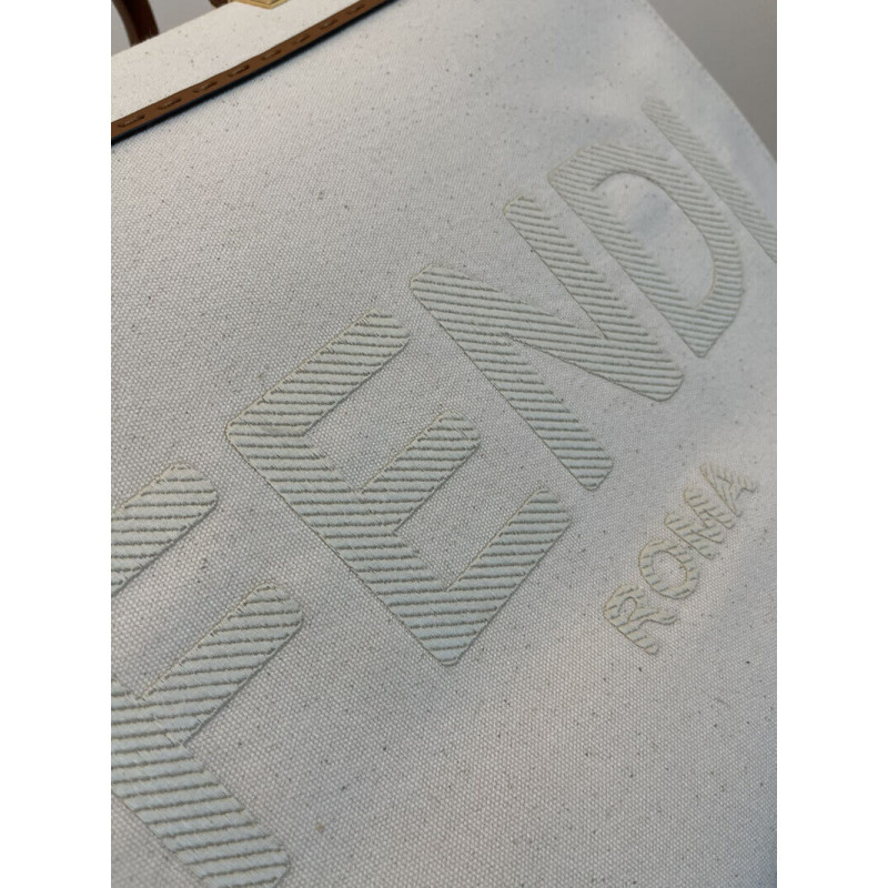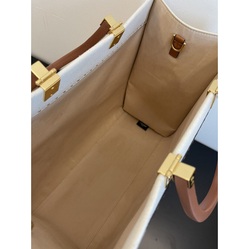 Fendi Large Sunshine Tote Bag in Cream Canvas 8BH372