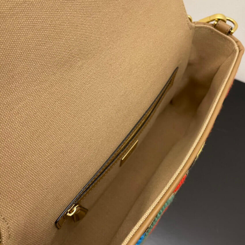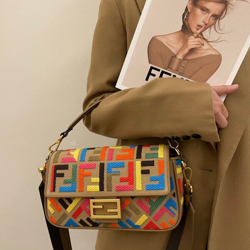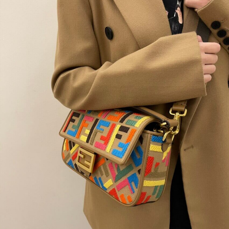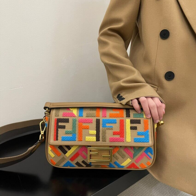 Fendi Baguette in Black Leather and White Fabric 2032