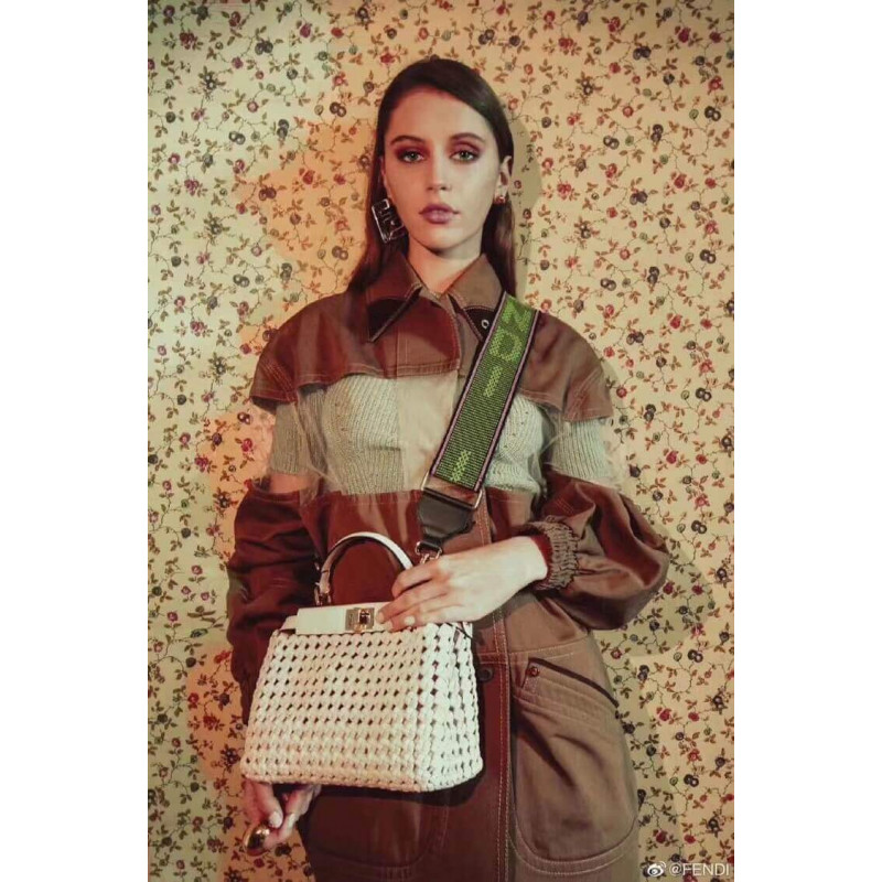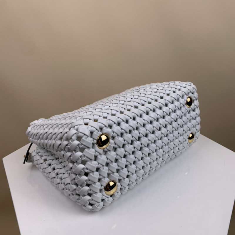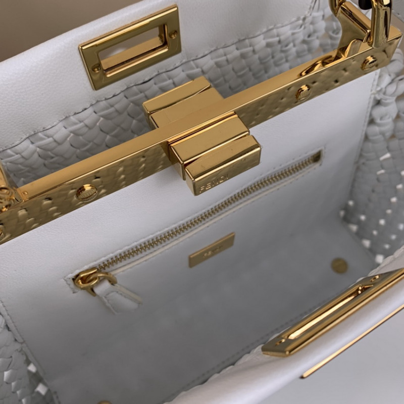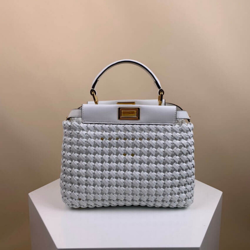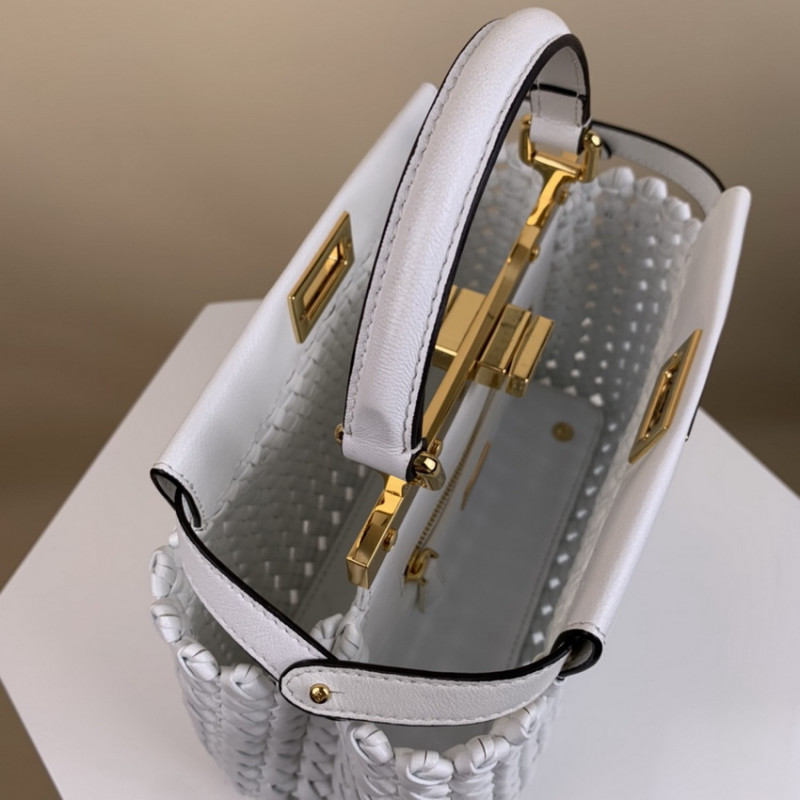 - Small iconic Peekaboo bag, made with strips of hand-woven,nappa leather and embellished with the classic twist lock on both sides.