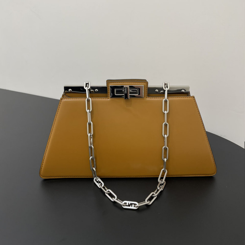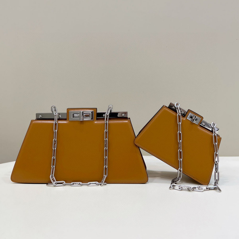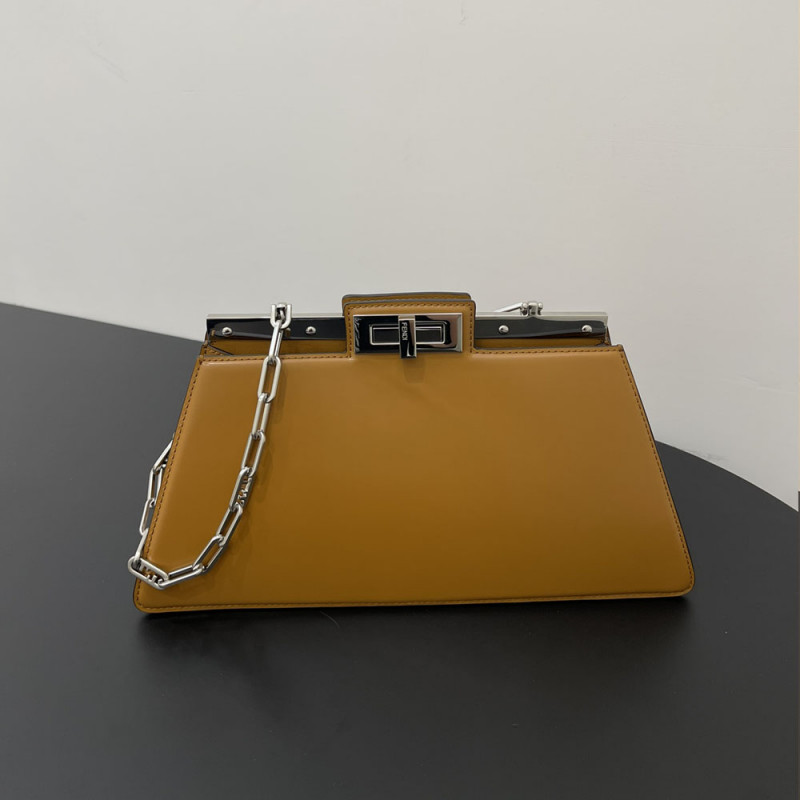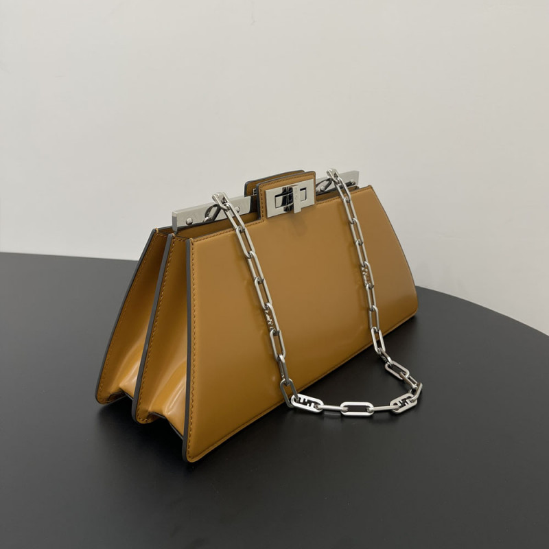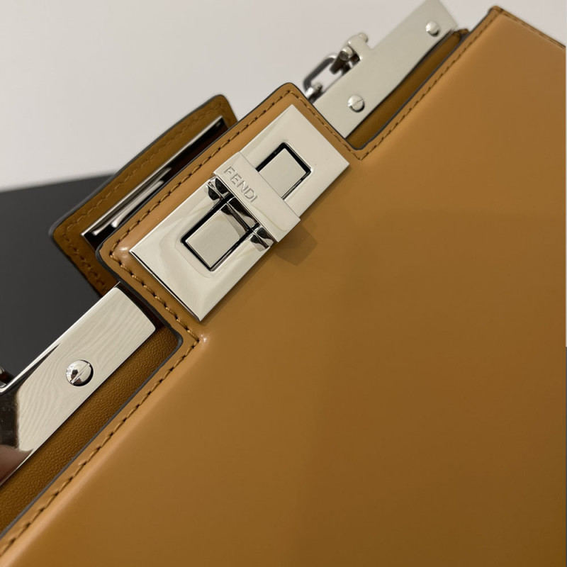 Mini Peekaboo Cut bag made of glossy black leather. A new evolution of the iconic Peekaboo ISeeU, it has a striking horizontal cut that accentuates its classic features and reveals the metal bar and the iconic twist lock on both sides.