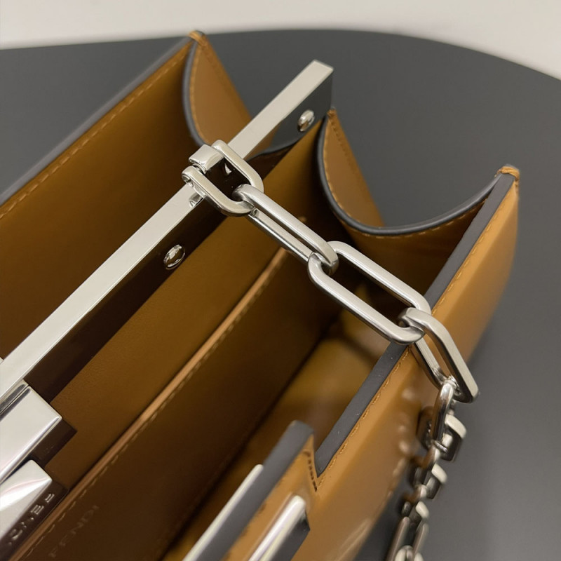 It can be carried by hand or on the shoulder thanks to the chain embellished with O’Lock details.