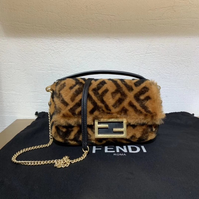 Fendi Mini Baguette Bag in Brown Fabric 8BS017