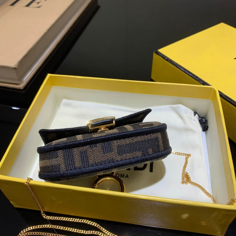 Fendi Mini Baguette Bag in Brown Fabric 8BS017