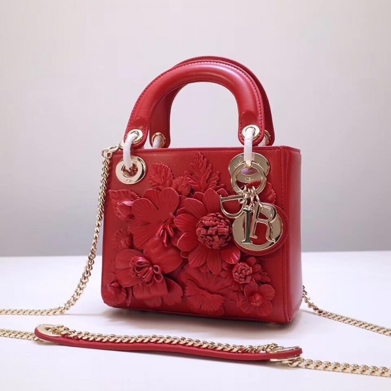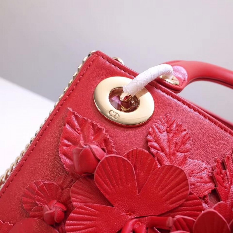 Christian Dior Lambskin Embroidered Flowers Mini "Lady Dior" Bag M0565