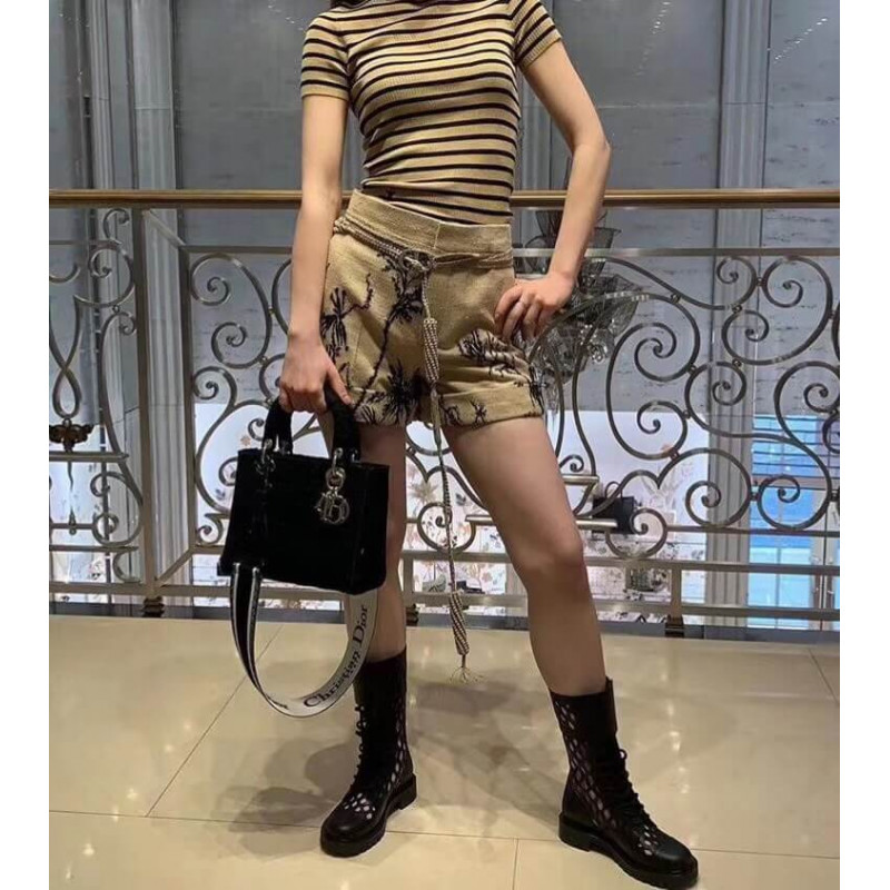 Christian Dior Textile Fabric Medium Lady Dior Bag L4455