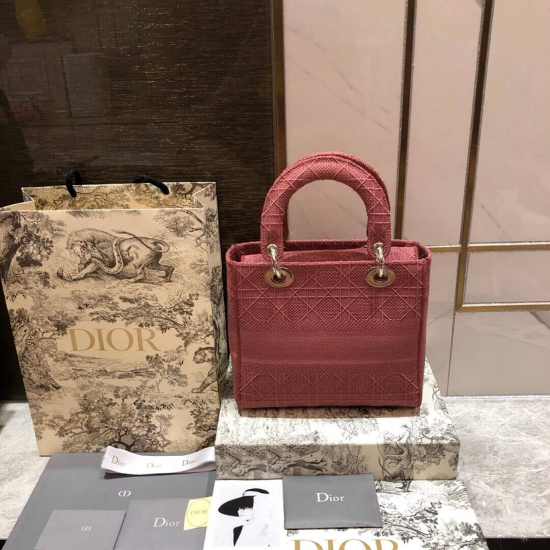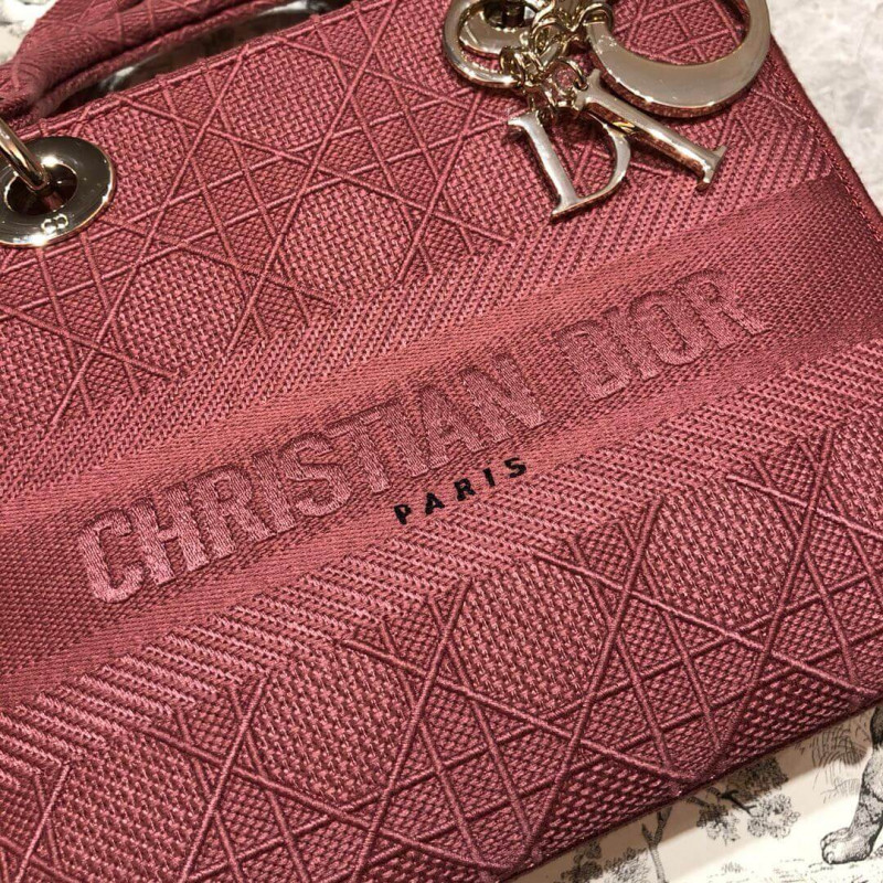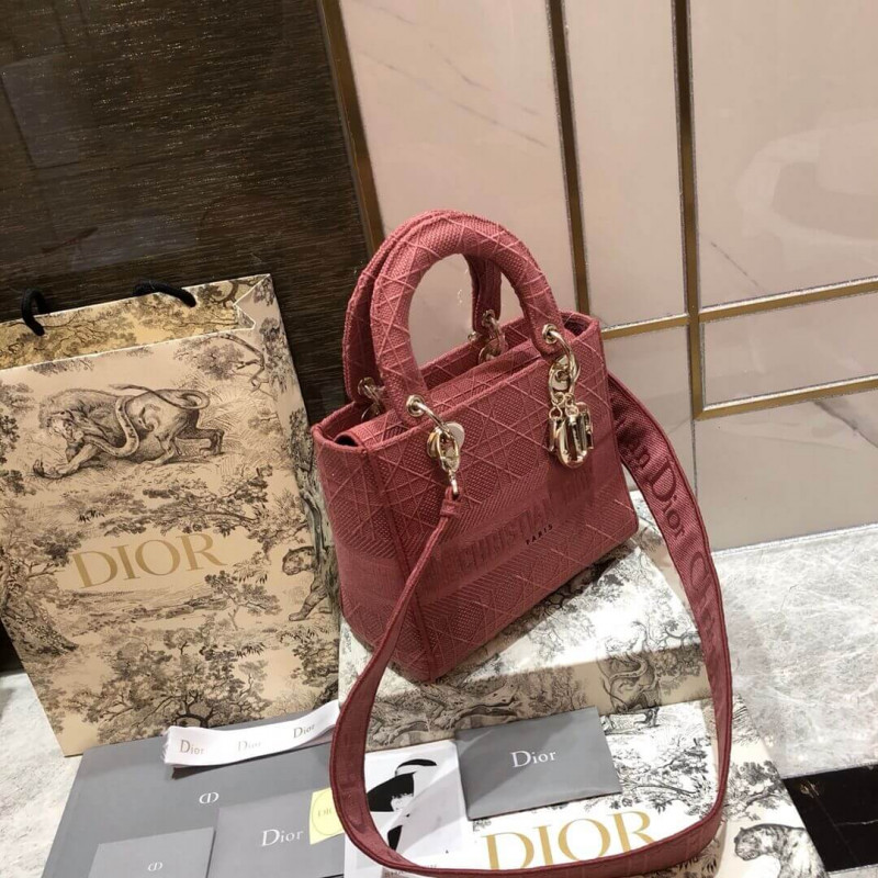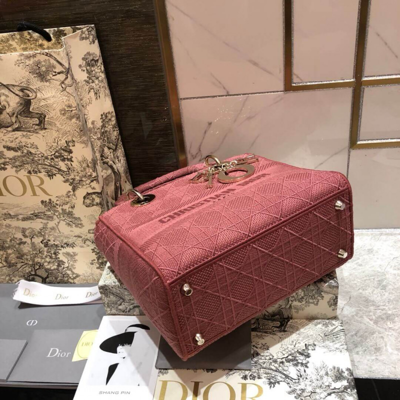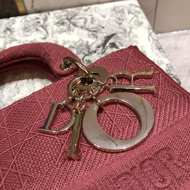 Christian Dior Textile Fabric Medium Lady Dior Bag L4455