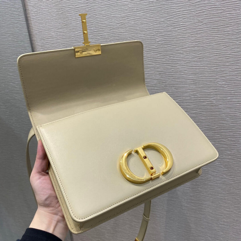 30 Montaigne flap bag in smooth black calfskin and CD clasp.