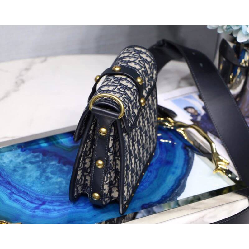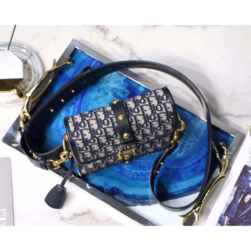 Christian Dior Medium DiorCamp Bag Blue Oblique Embroidery M1240