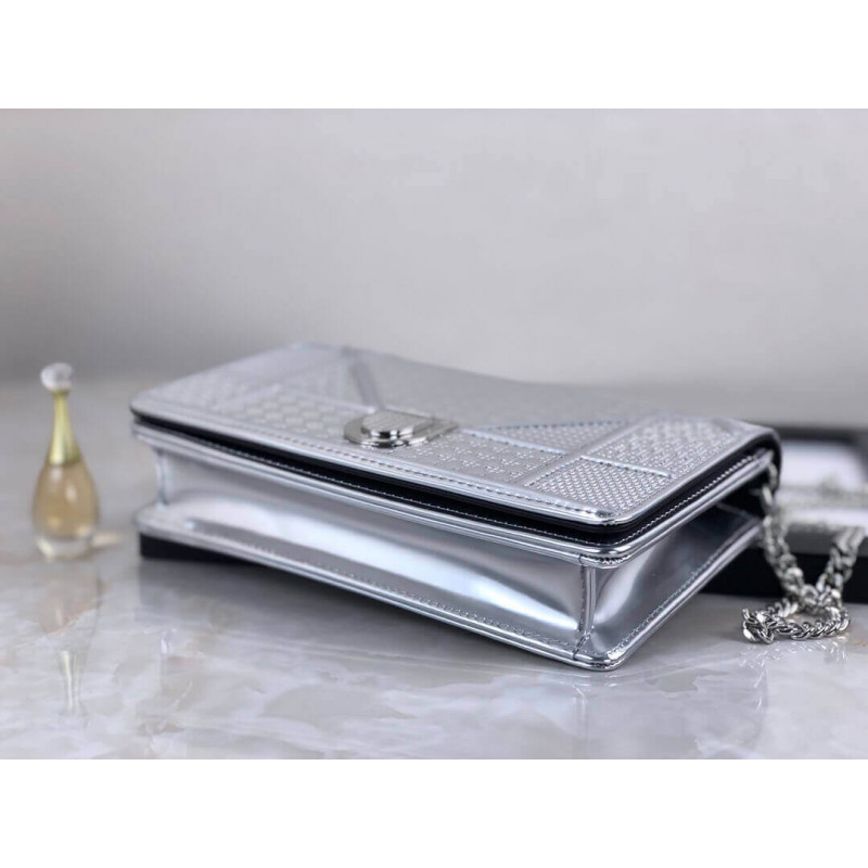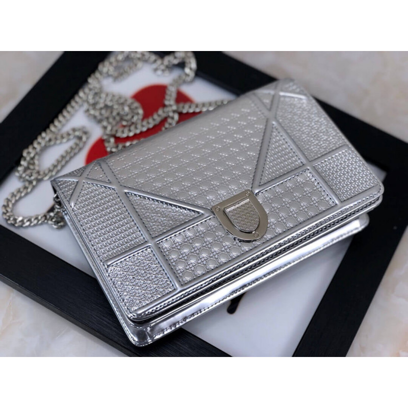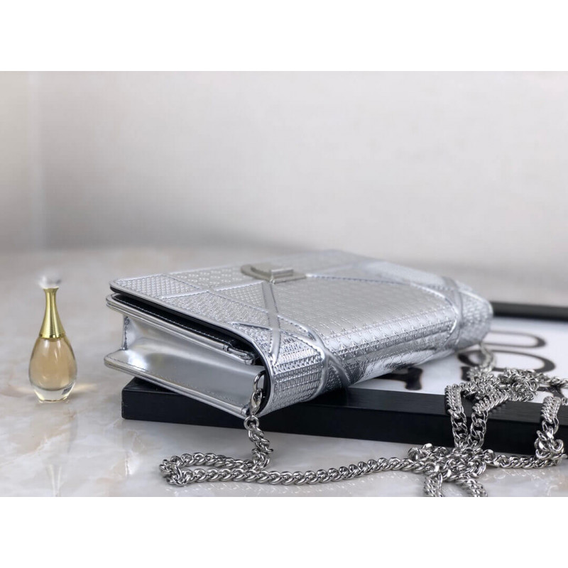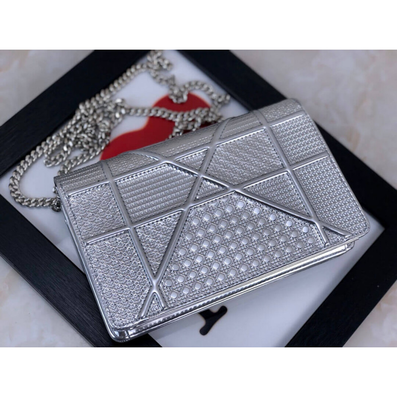 Diorama Wallet on Chain clutch calfskin with “Micro-cannage” motif, jewellery.