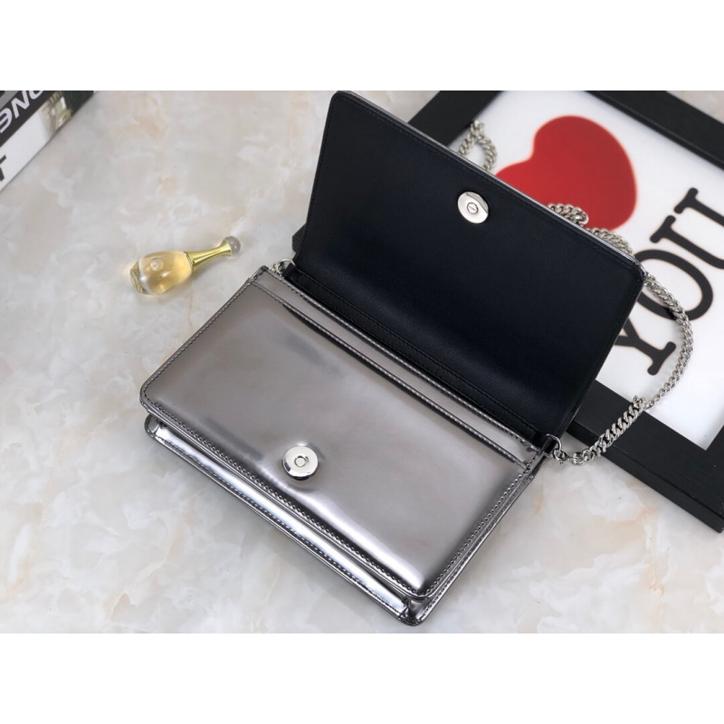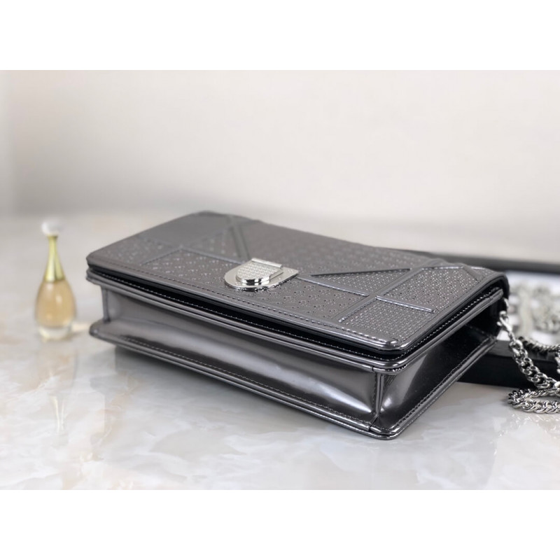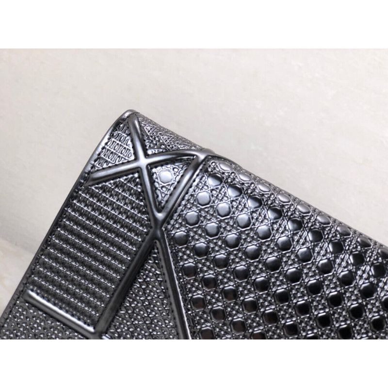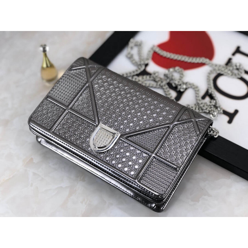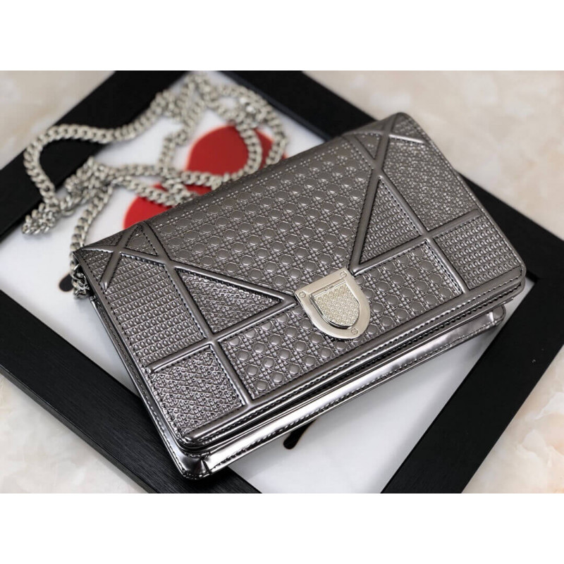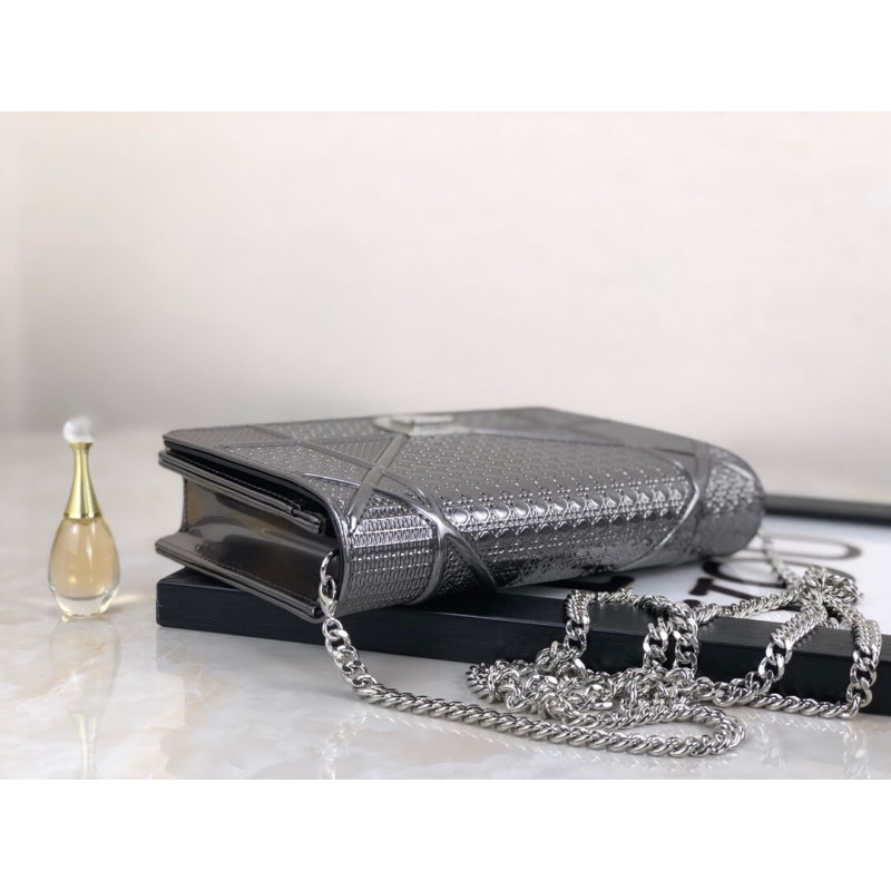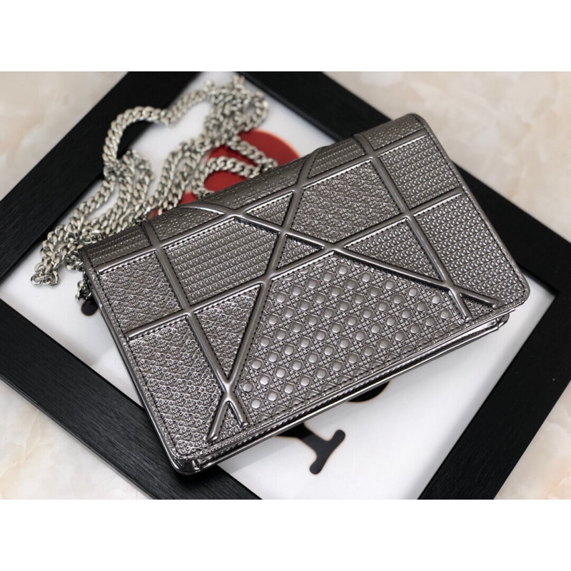 Diorama Wallet on Chain clutch calfskin with “Micro-cannage” motif, jewellery.