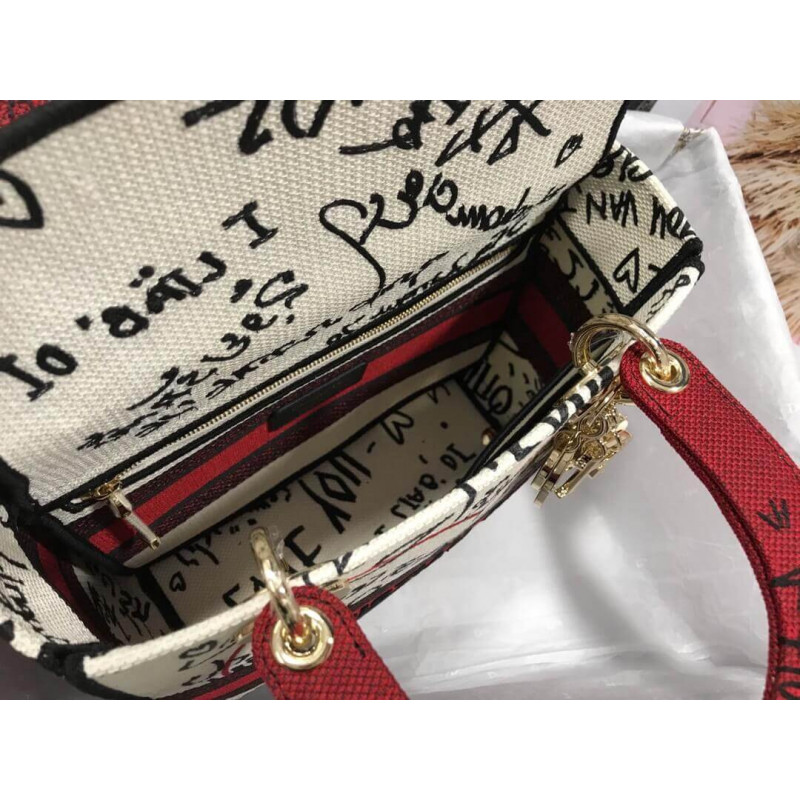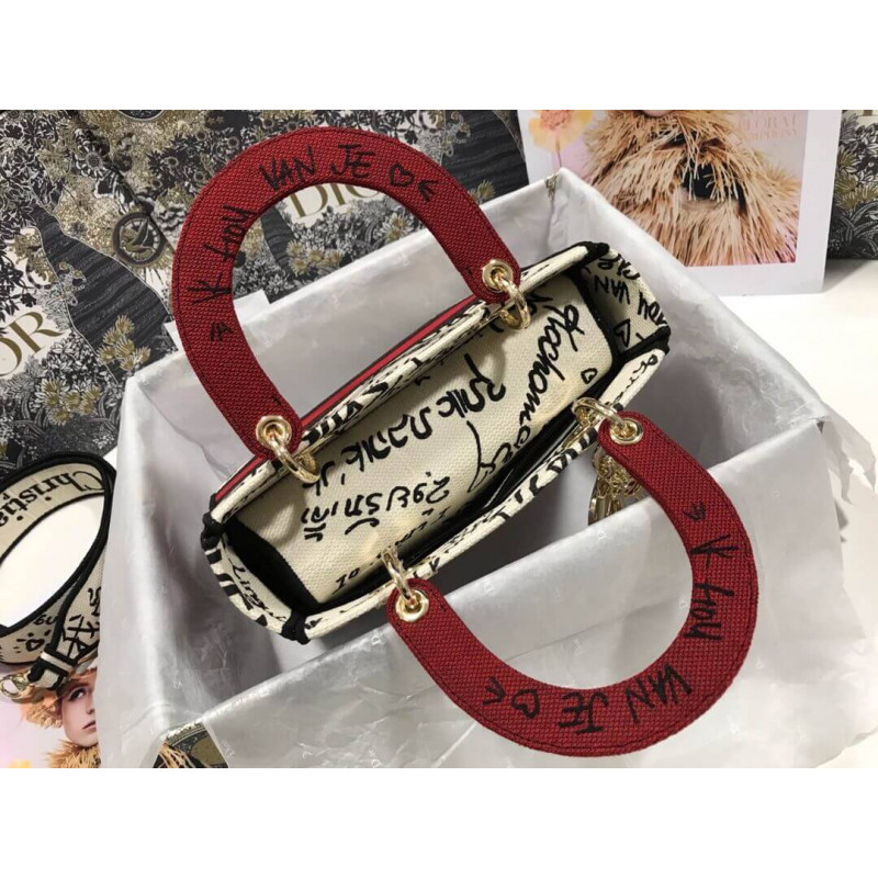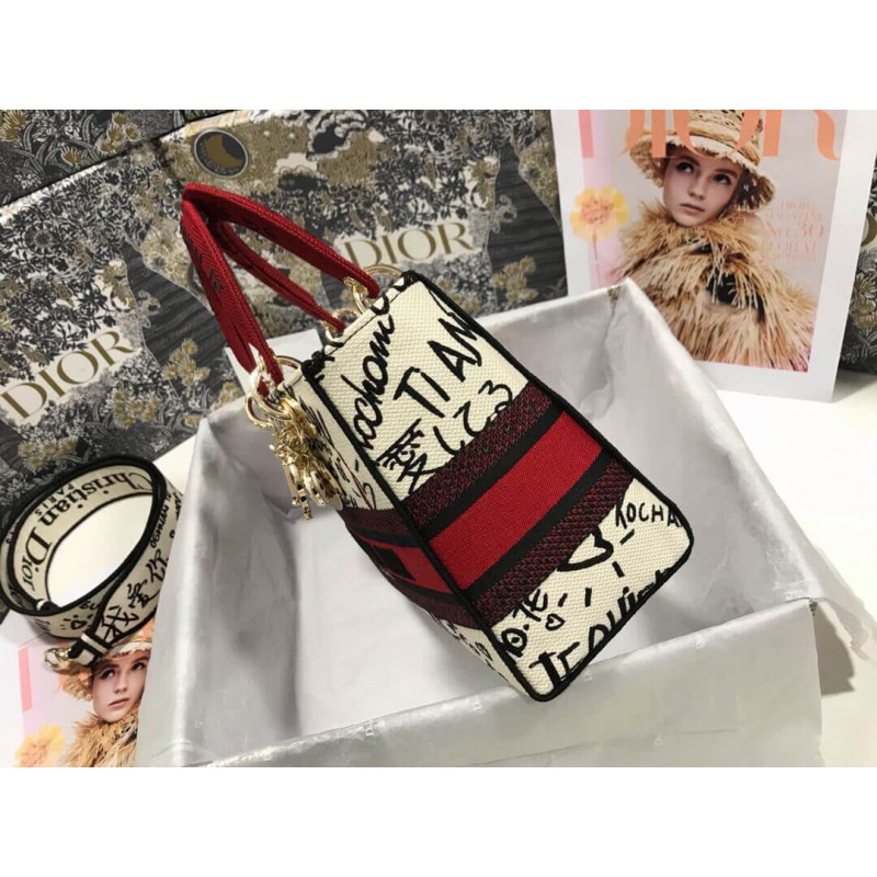 Dior Medium Lady D-Lite Dioramour Bag Latte Multicolor Dioramour Graffiti Embroidery M0565