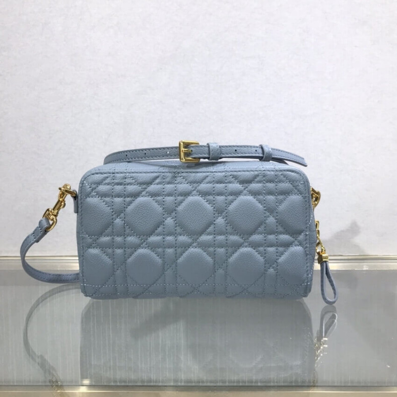 The Dior Caro double pouch, both spacious and compact, is ideal for daily life. Crafted in black calfskin, it is embellished with hallmark Cannage topstitching and features two large compartments, a zipped pocket and two card slots to hold all the essentials. The removable and adjustable strap allows it to be carried by hand, worn over the shoulder or crossbody.