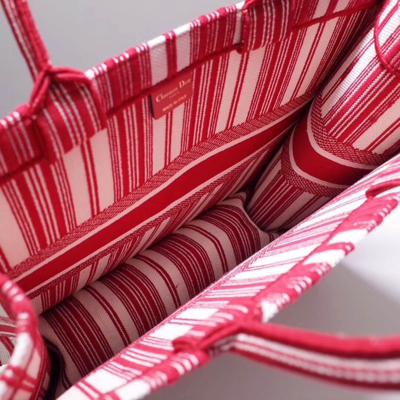 Christian Dior Small Book Tote Bag 26cm Oblique Embroidery Red