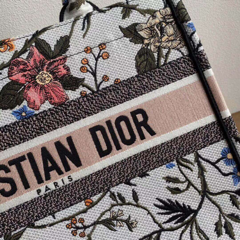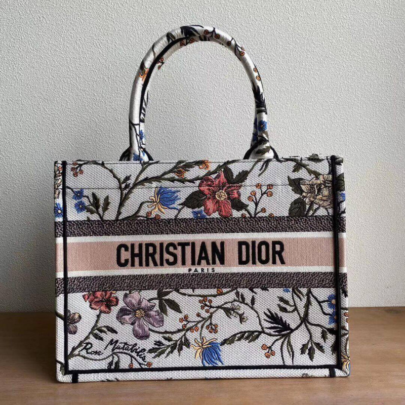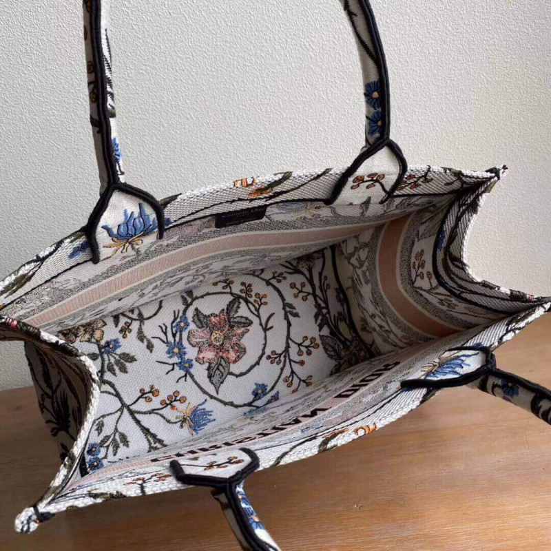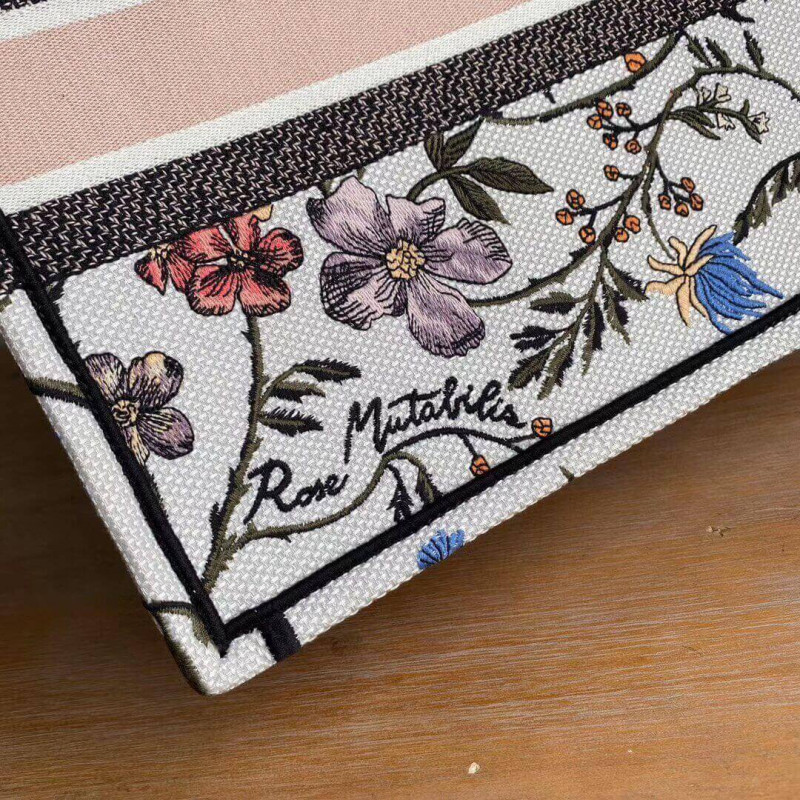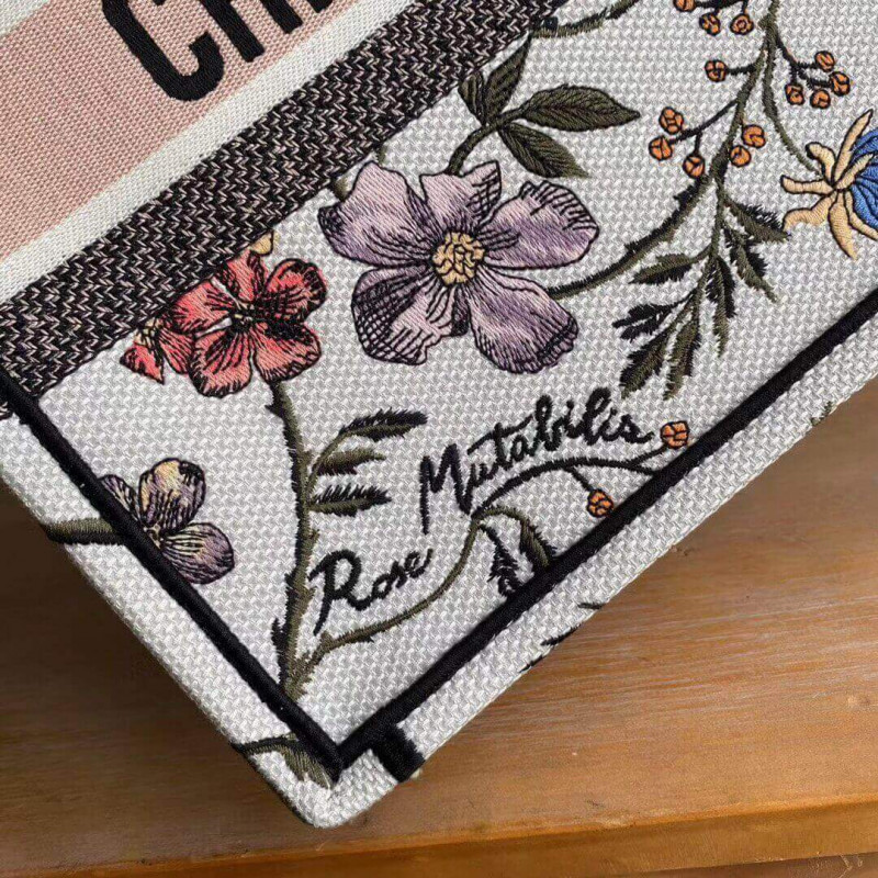 Christian Dior Small Book Tote Multicolor Rosa Mutabilis Embroidery M1296