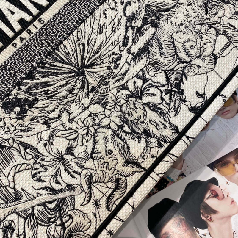 The Dior Book Tote, an original style introduced by Creative Director Maria Grazia Chiuri, has become a staple of the Dior aesthetic. This latte silhouette is fully embroidered with the Dior Zodiac motif, channeling Mr. Dior s fascination for astrology. Adorned with the Christian Dior signature, the Dior Book Tote exemplifies the House s signature savoir-faire.