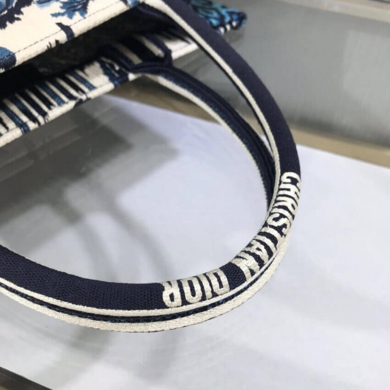 Dior Small Book Tote in Blue Palms Embroidery M1296