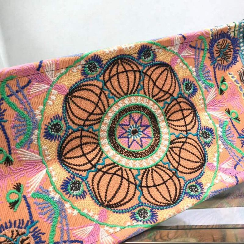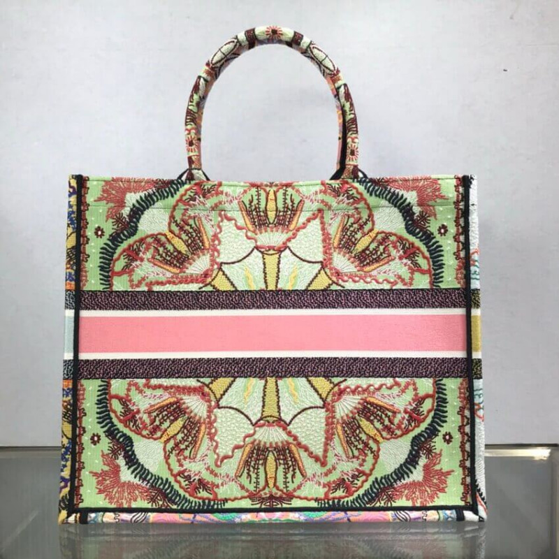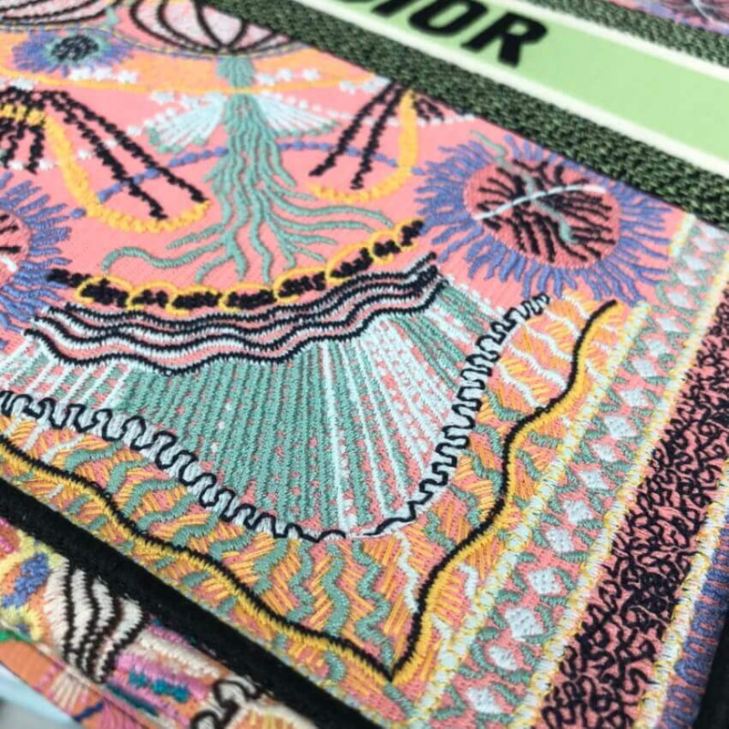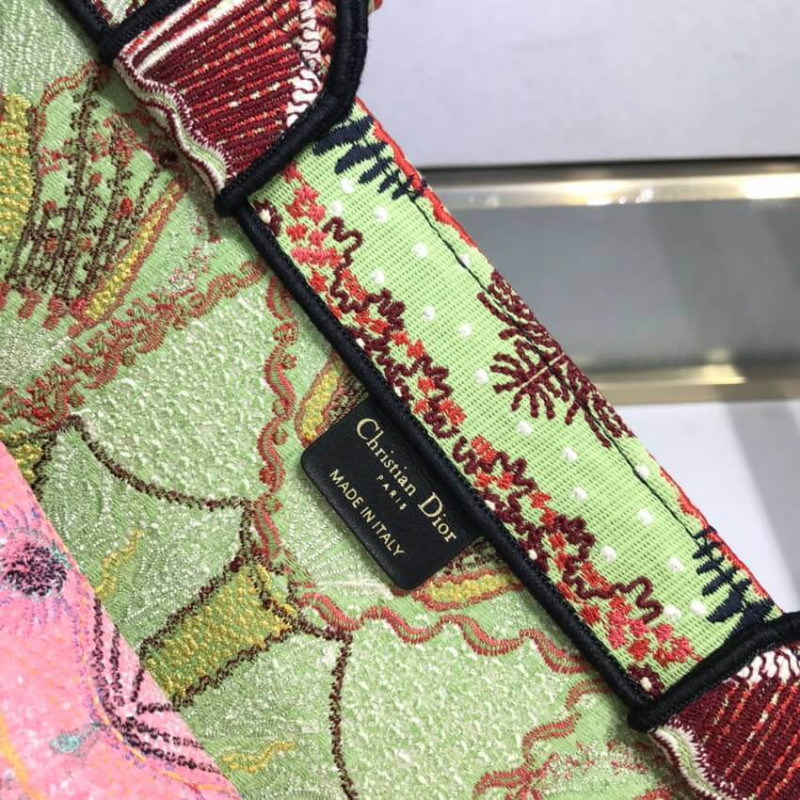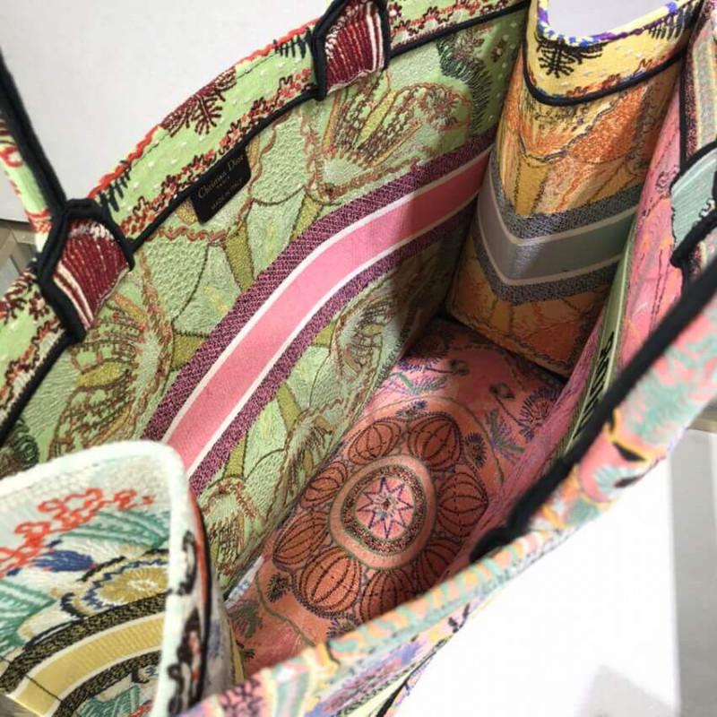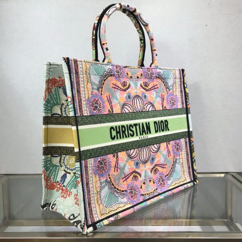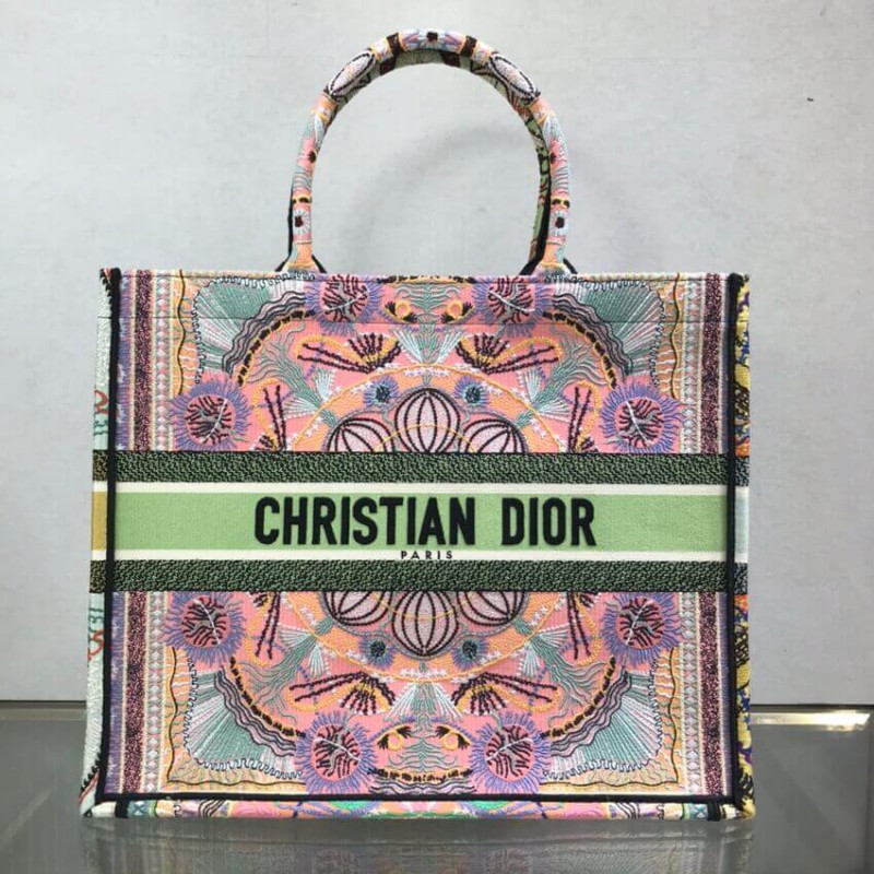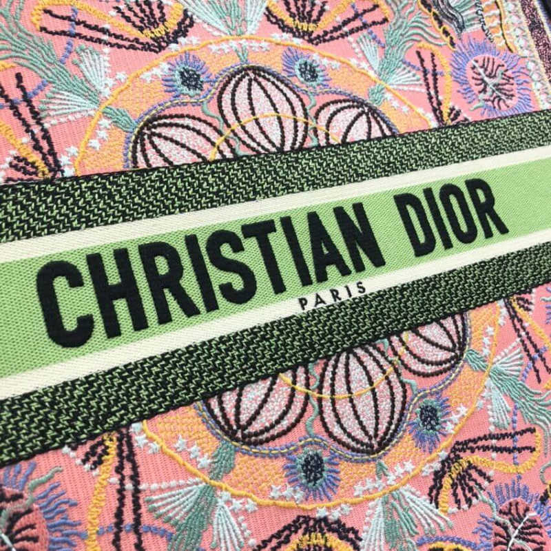 The Dior Book Tote, an original style introduced by Creative Director Maria Grazia Chiuri, has become a staple of the Dior aesthetic. Inspired by the light festivals in the south of Italy, this style is embroidered with the graphic multicolor Dior In Lights motif accented with metallic thread. Each of the four sides of this bag features a different color for a patchwork look. Adorned with the Christian Dior signature, the Dior Book Tote exemplifies the House s signature savoir-faire and may be paired with other seasonal Dior In Lights creations.
