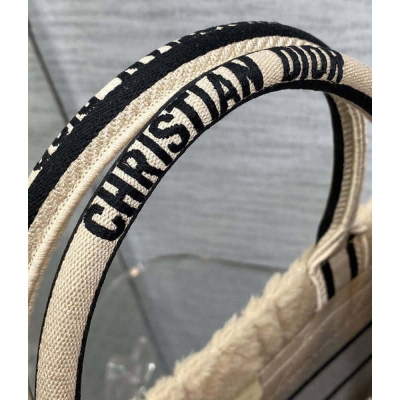 Introduced by Maria Grazia Chiuri, Dior s Creative Director, the Dior Book Tote has become a staple of the Dior aesthetic. Designed to hold all the daily essentials, the beige shearling style is fully embroidered with the hallmark Cannage motif, and is adorned with the CHRISTIAN DIOR PARIS signature on the front. Exemplifying the House s signature savoir-faire, the large tote may be carried by hand or worn over the shoulder.