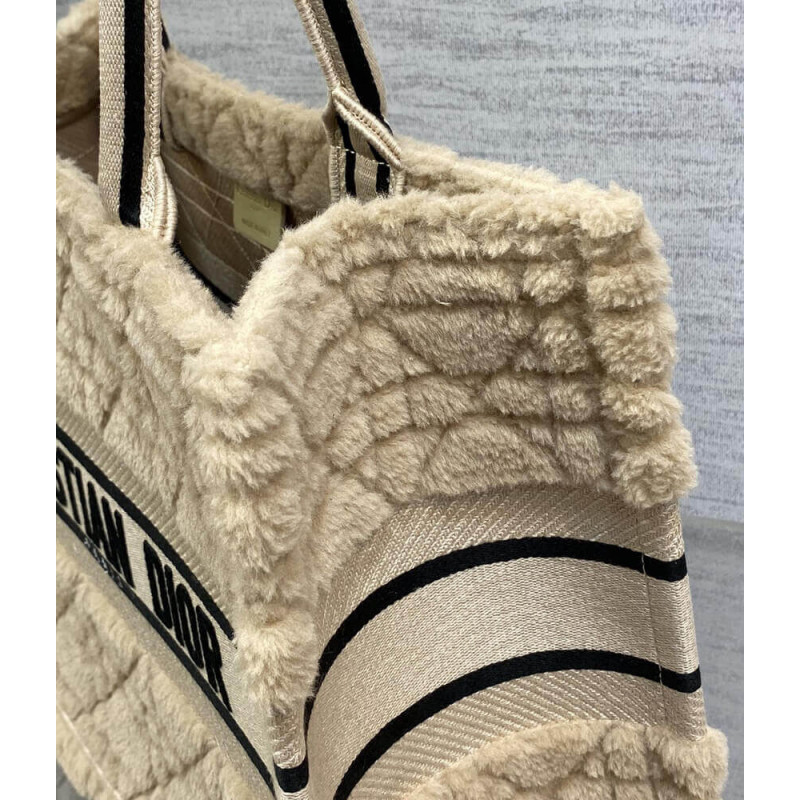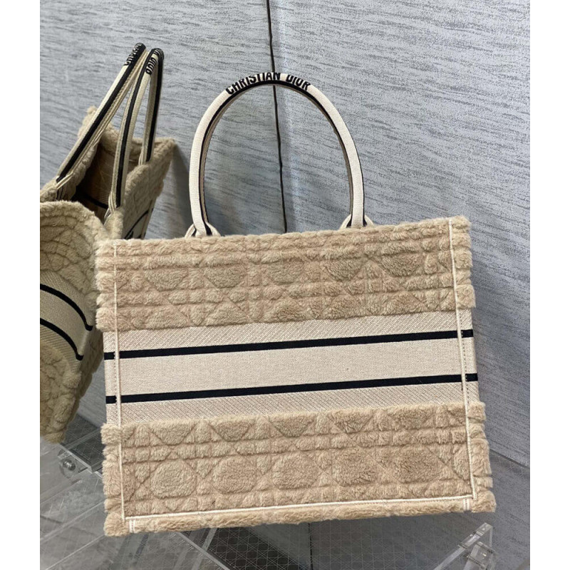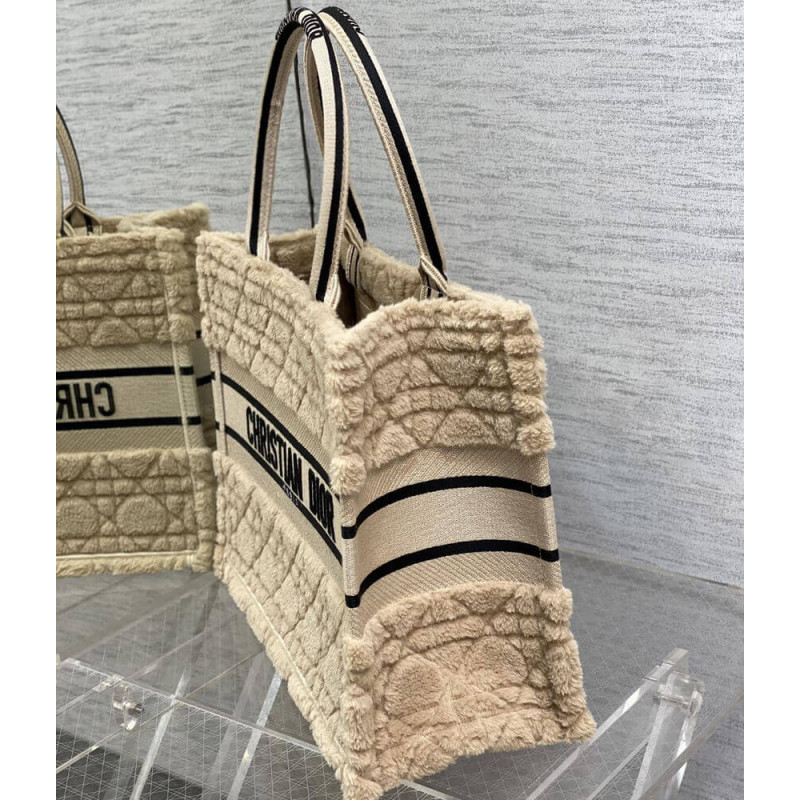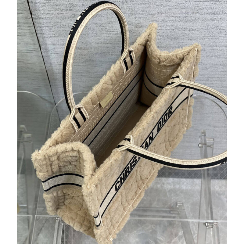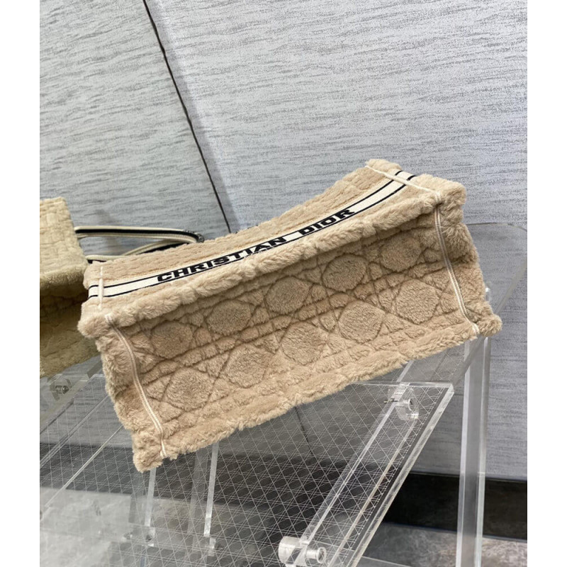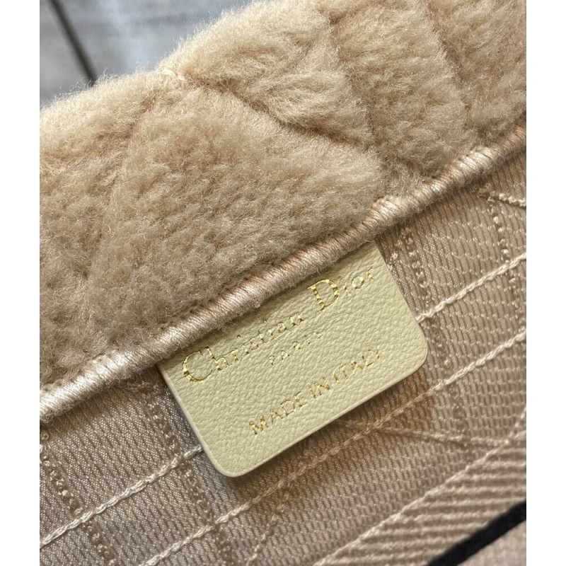 Christian Dior Medium Book Tote Beige Cannage Shearling M1296
