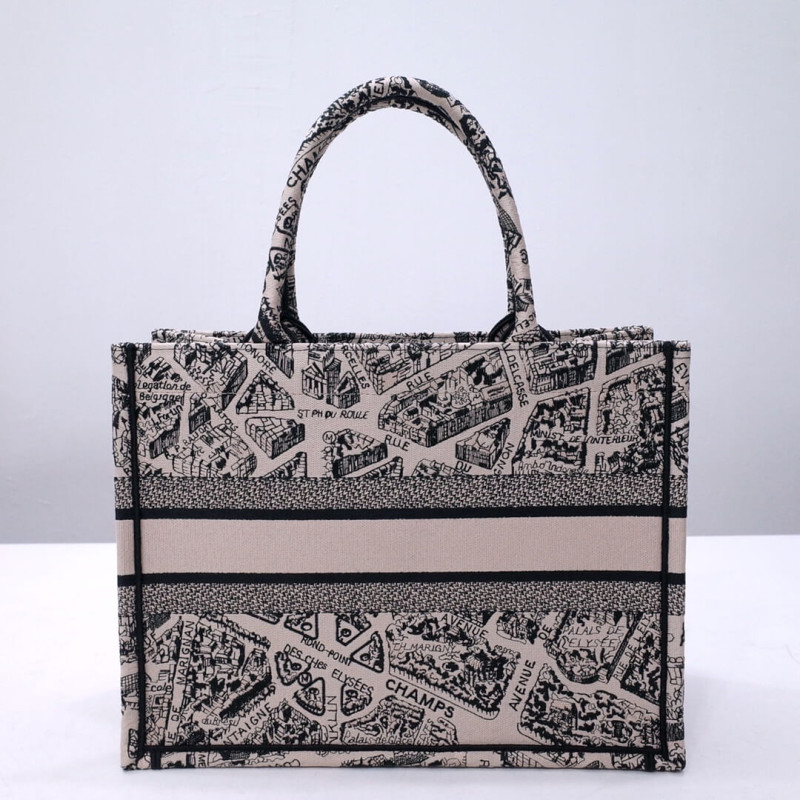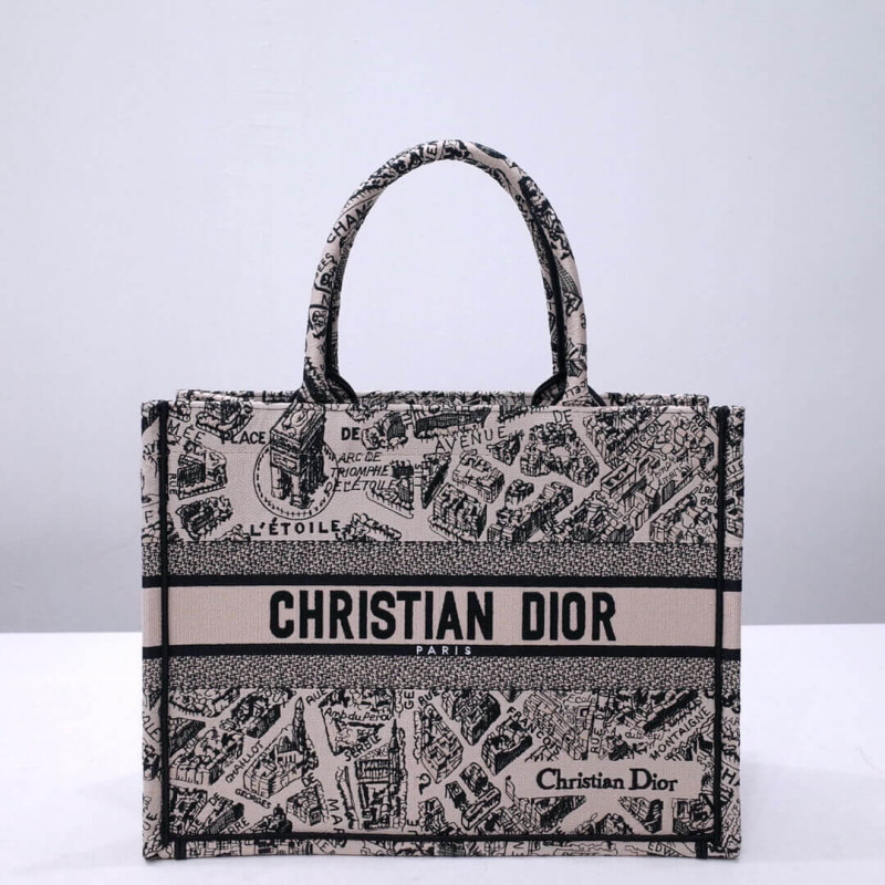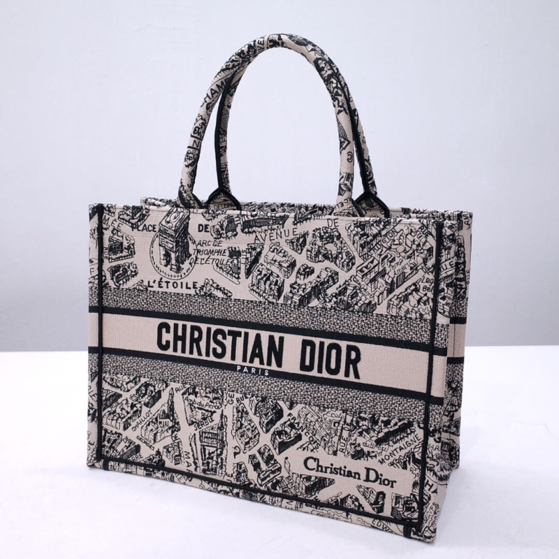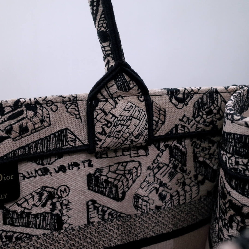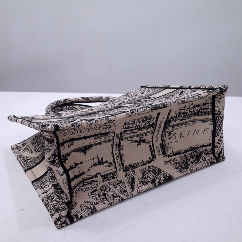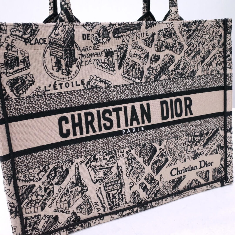 Christian Dior Book Tote Beige and Black Plan de Paris Embroidery