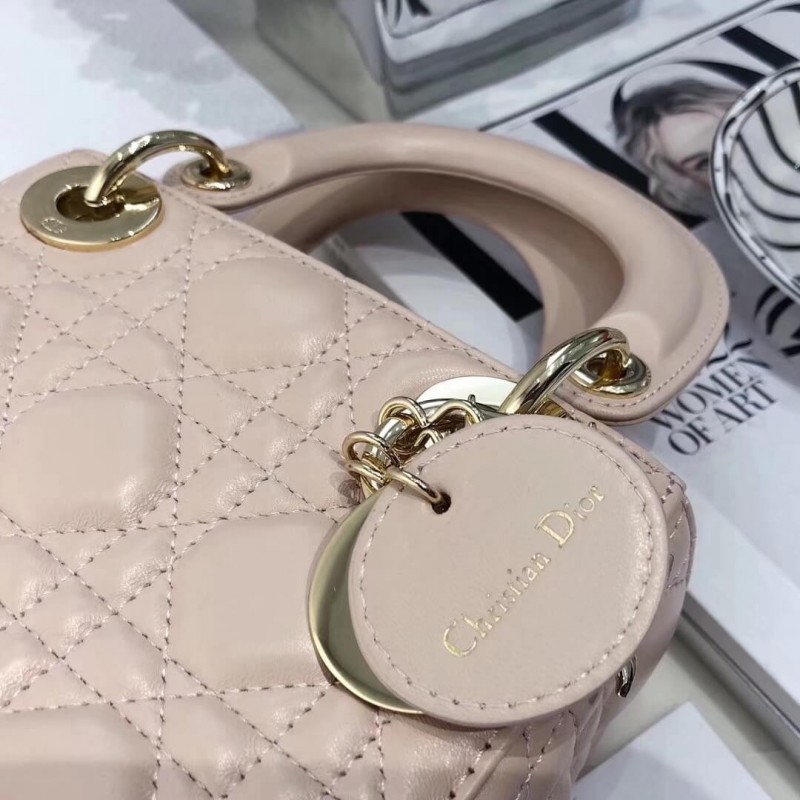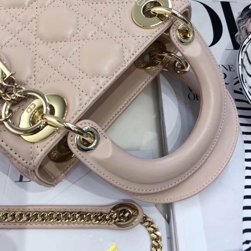 A timeless and unique work of art, the Lady Dior bag is imbued with the Couture spirit of Dior. Meticulously crafted by hand, this mini lambskin bag is enhanced by iconic Dior Cannage stitching.