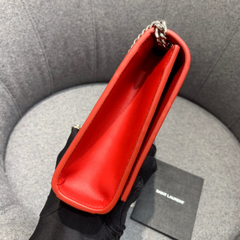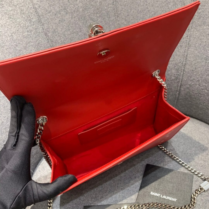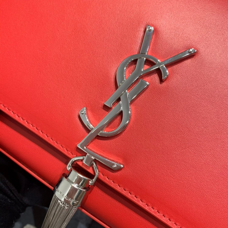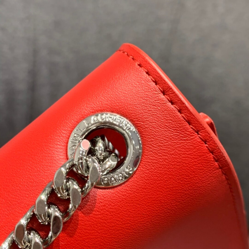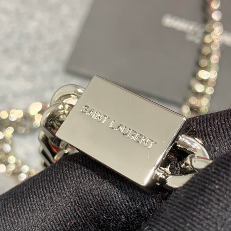 Classic monogram saint laurent gourmette chain shoulder bag with interlocking metal ysl signature and metal chain tassel.