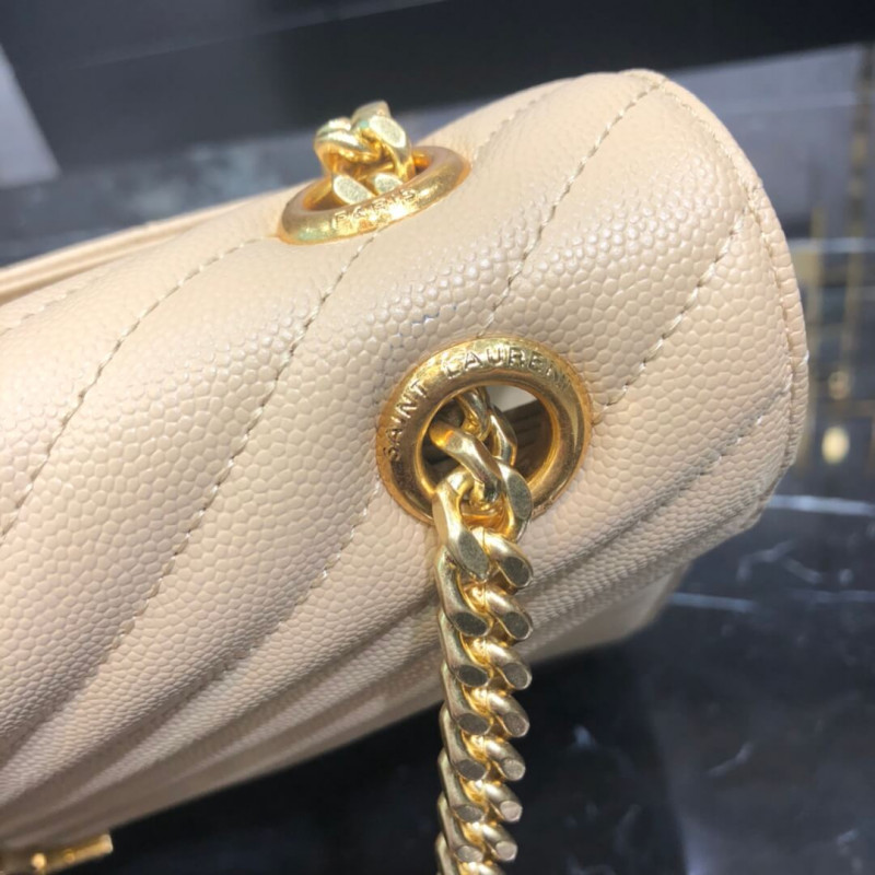 Classic monogram saint laurent double gourmette chain flap front bag with gold-toned metal ysl signature and matelassé stitching.