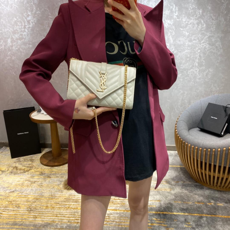 Saint Laurent Grain Leather Envelope Small Bag 526286 White