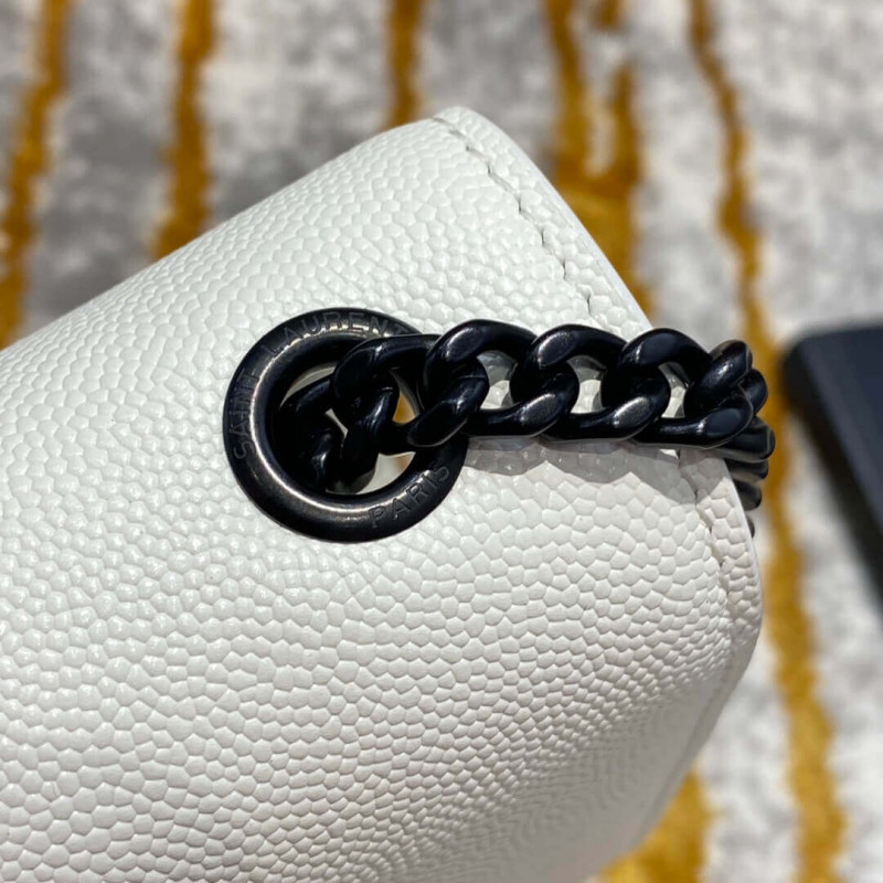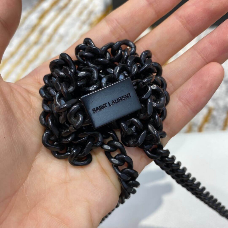 Saint laurent monogram shoulder bag adorned with a curb chain and interlacing metal ysl initials.